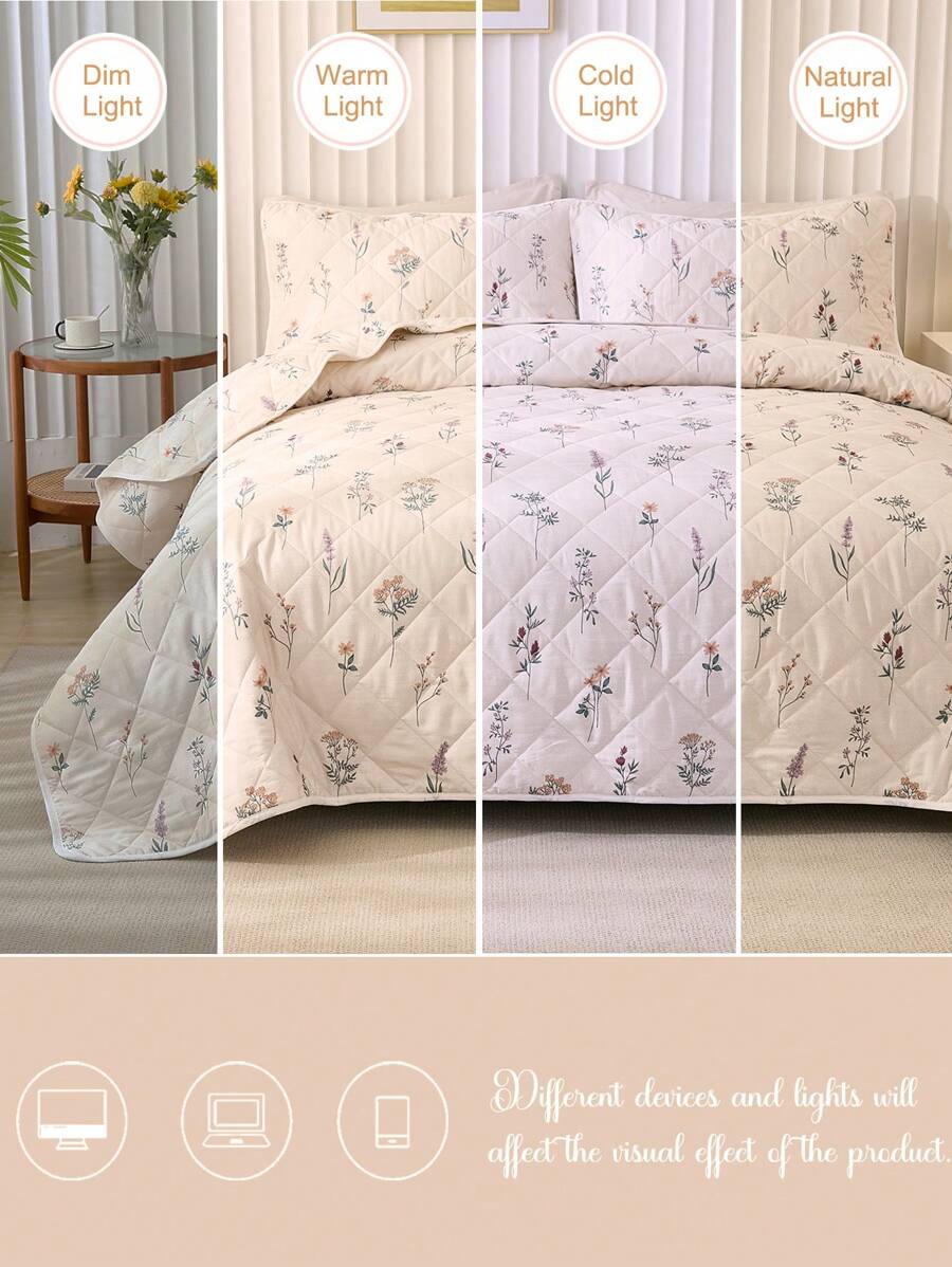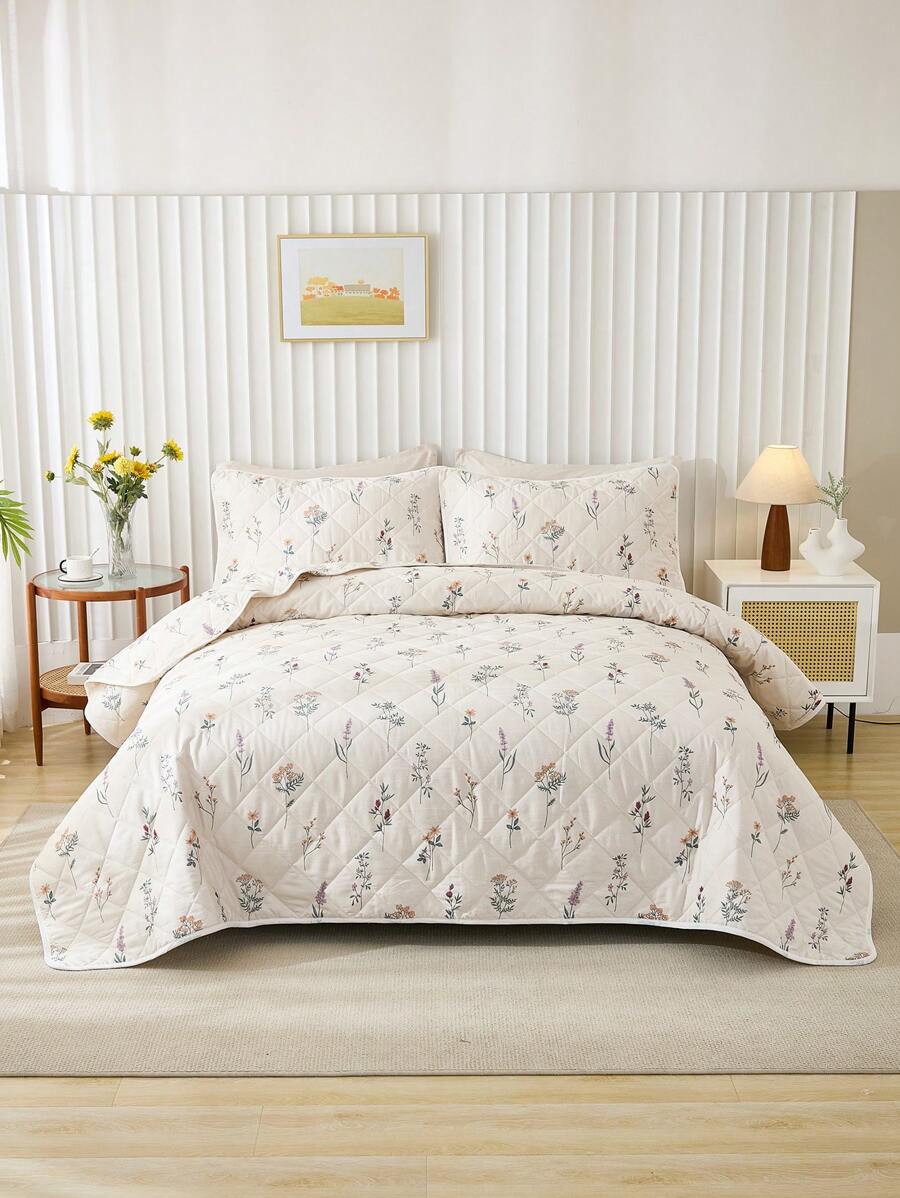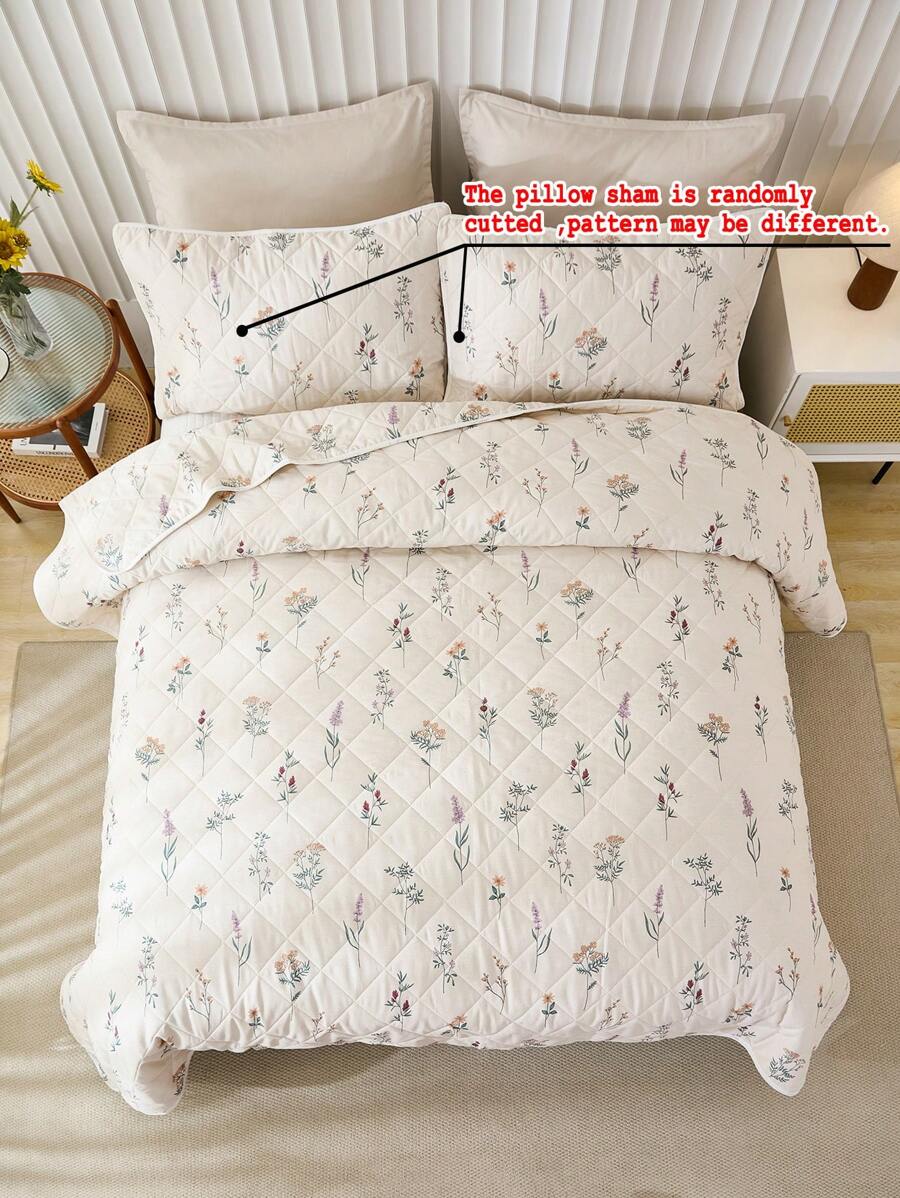 3pcs Soft & Breathable Floral Printed Quilt Set (1pc Quilt Cover + 2pcs Pillowcases), Suitable For All Seasons, Bedroom Decor quantity