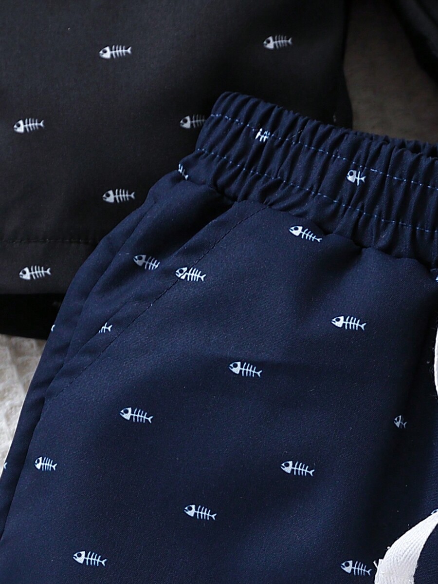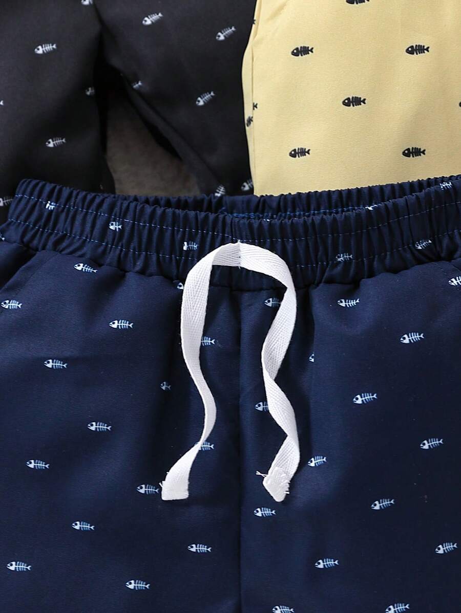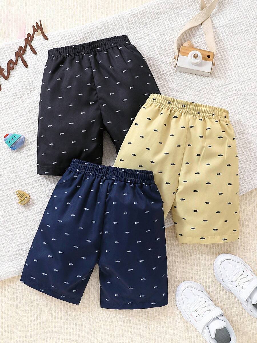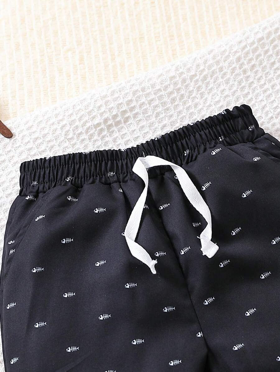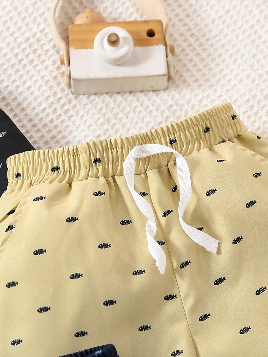 3pcs Young Boy Casual Fishbone Printed Shorts Set, Suitable For Summer Outdoor Activities, School, Daily Wear, Leisure, Vacation, Parties quantity