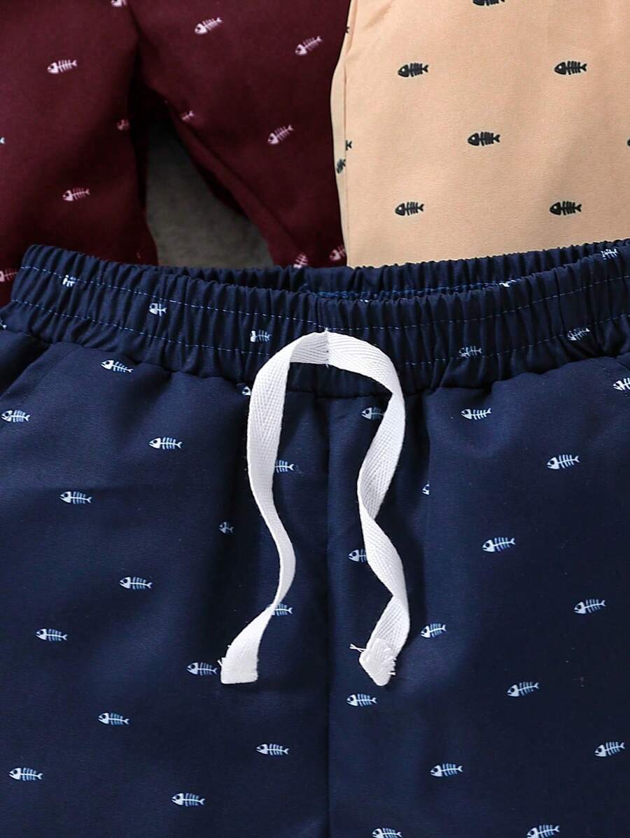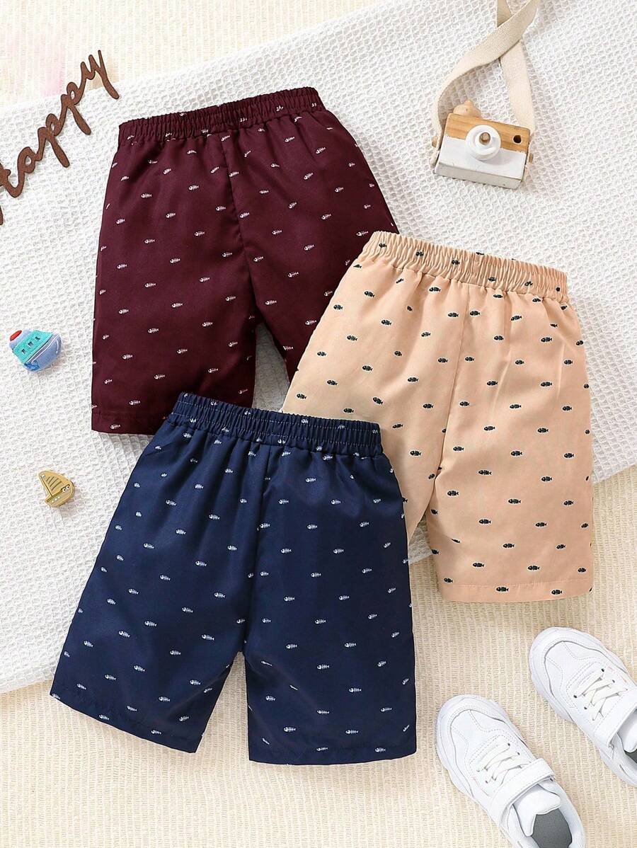 3pcs Young Boys' Casual Herringbone Print Shorts, Suitable For Summer Outdoor, School, Daily, Casual, Vacation, And Gathering quantity