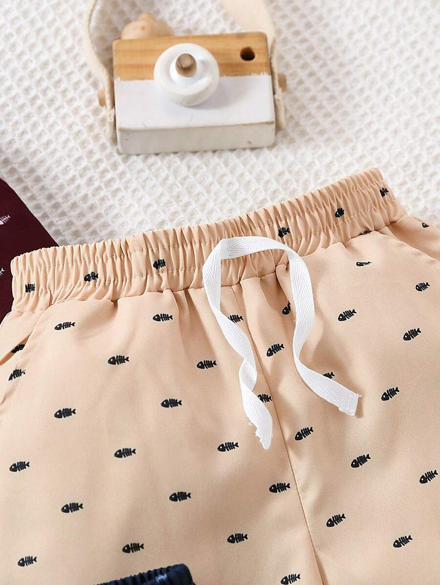 / 3pcs Young Boys’ Casual Herringbone Print Shorts, Suitable For Summer Outdoor, School, Daily, Casual, Vacation, And Gathering