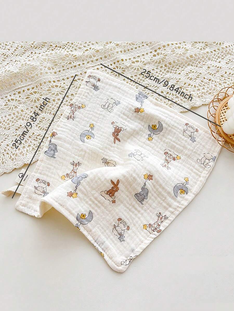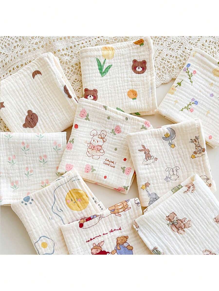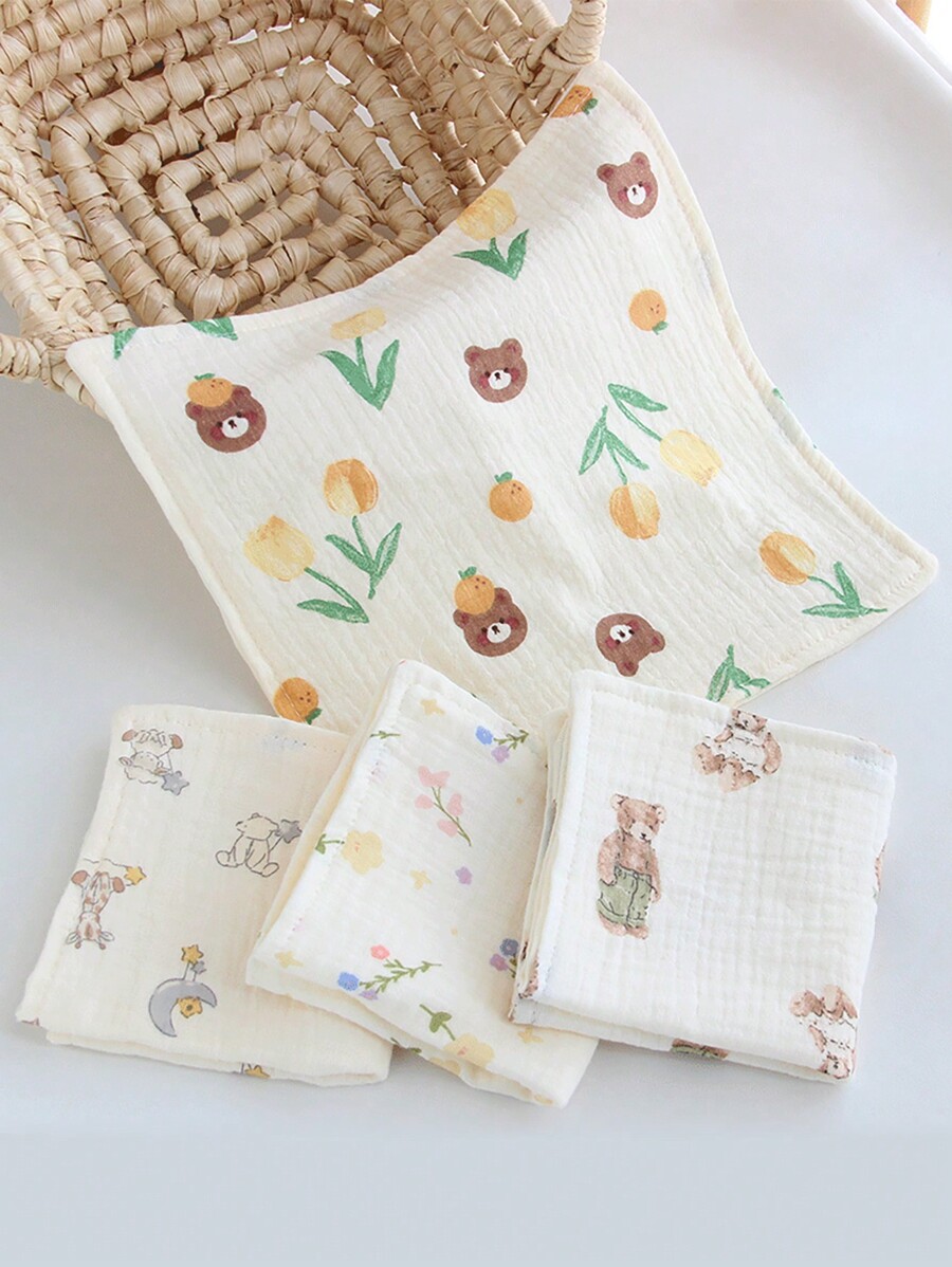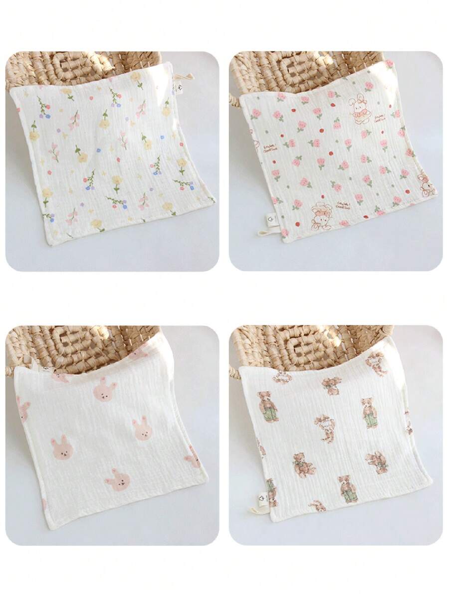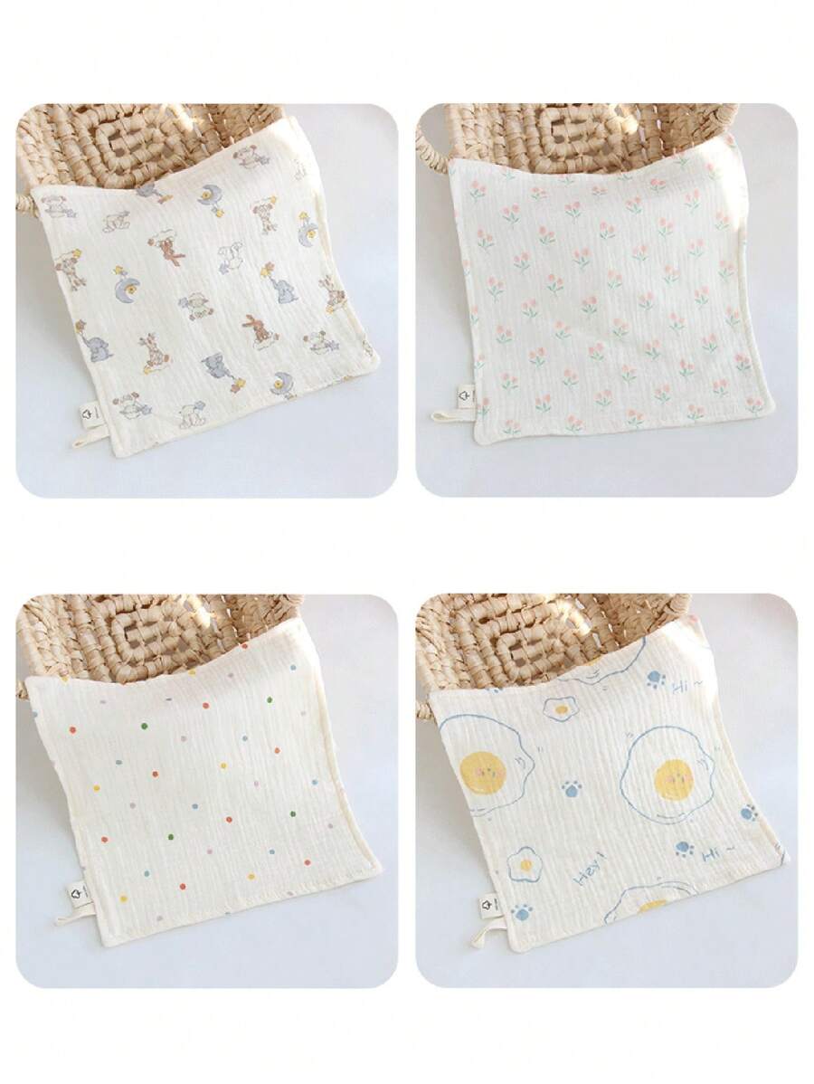 / 4pcs/Pack Random Assorted Gauze Cloth Cartoon Cute Drool Bib Soft Baby Handkerchief Towel Kids Washcloth