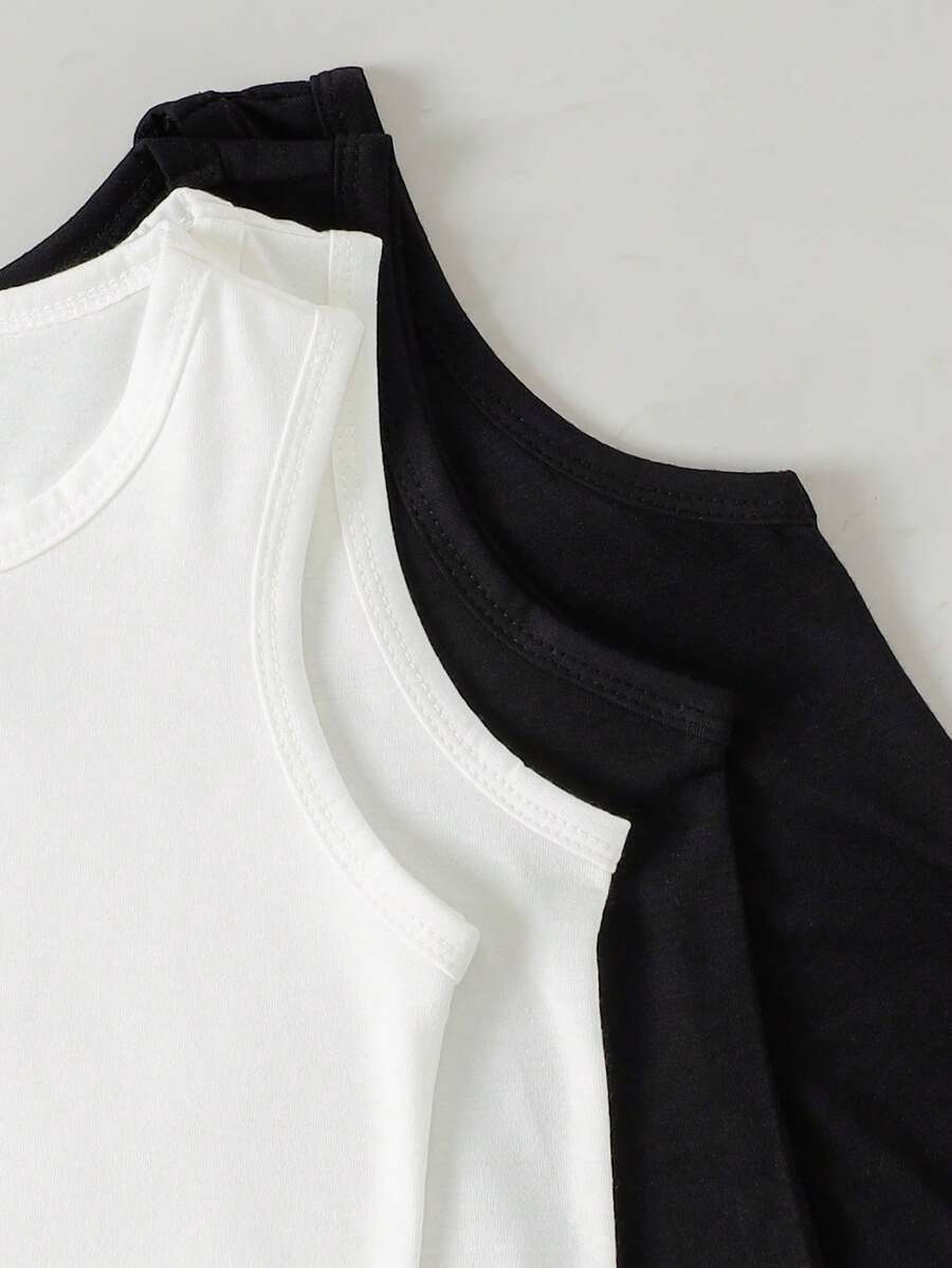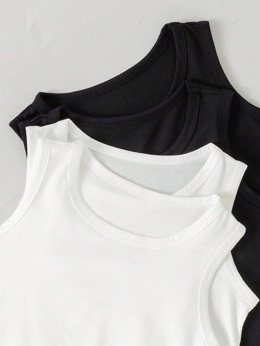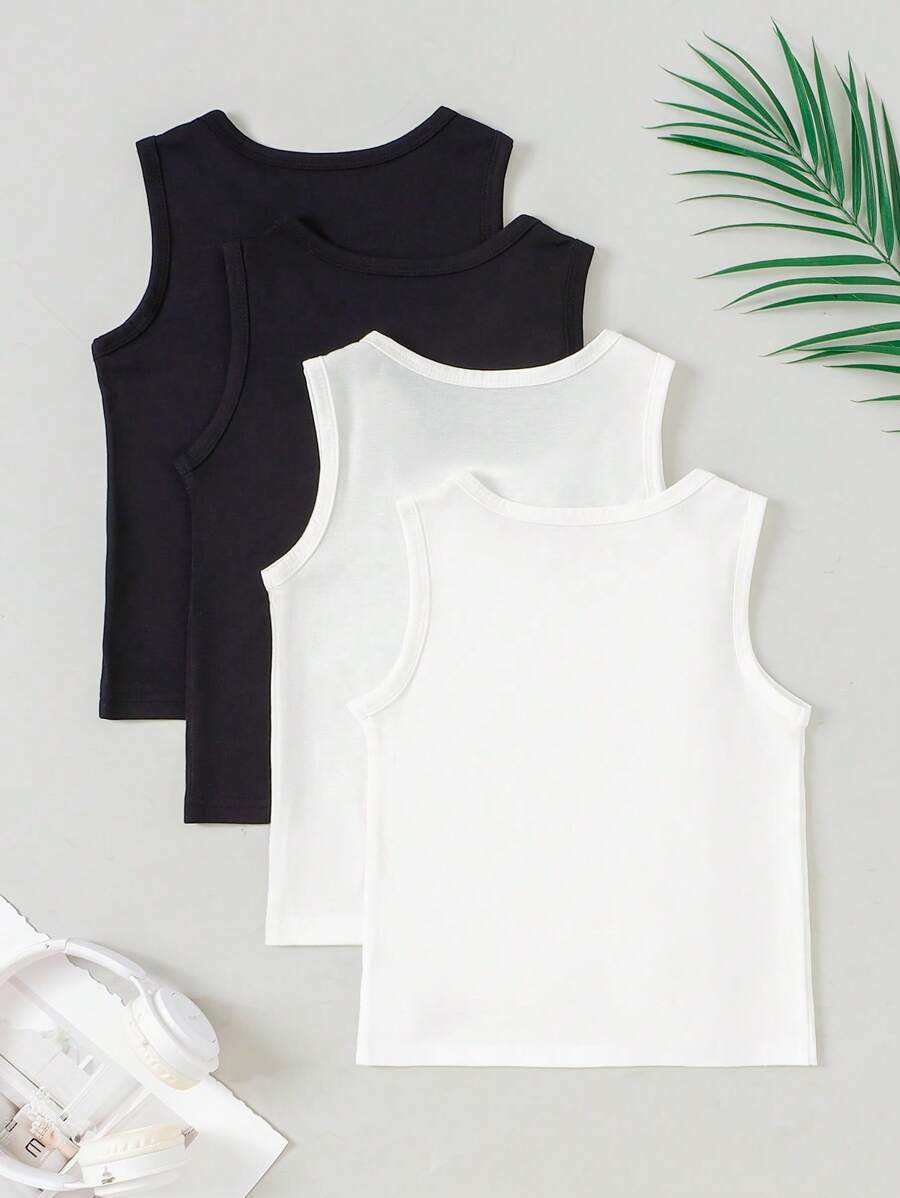 4pcs Young Boy Minimalist Solid White Comfortable Sleeveless Vest Underwear Set
