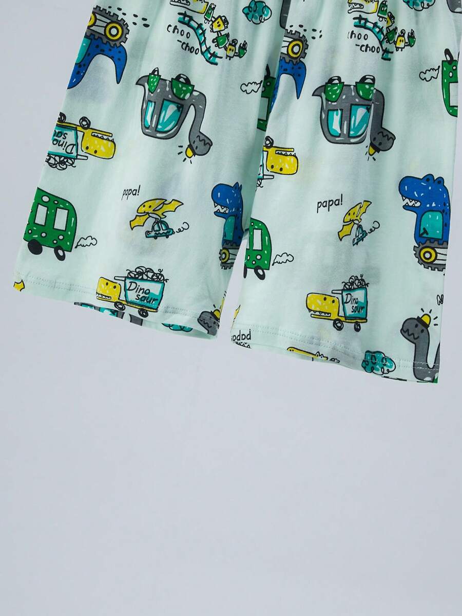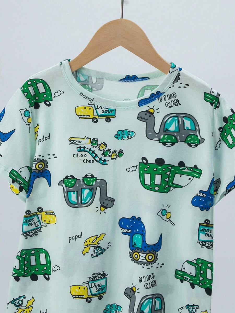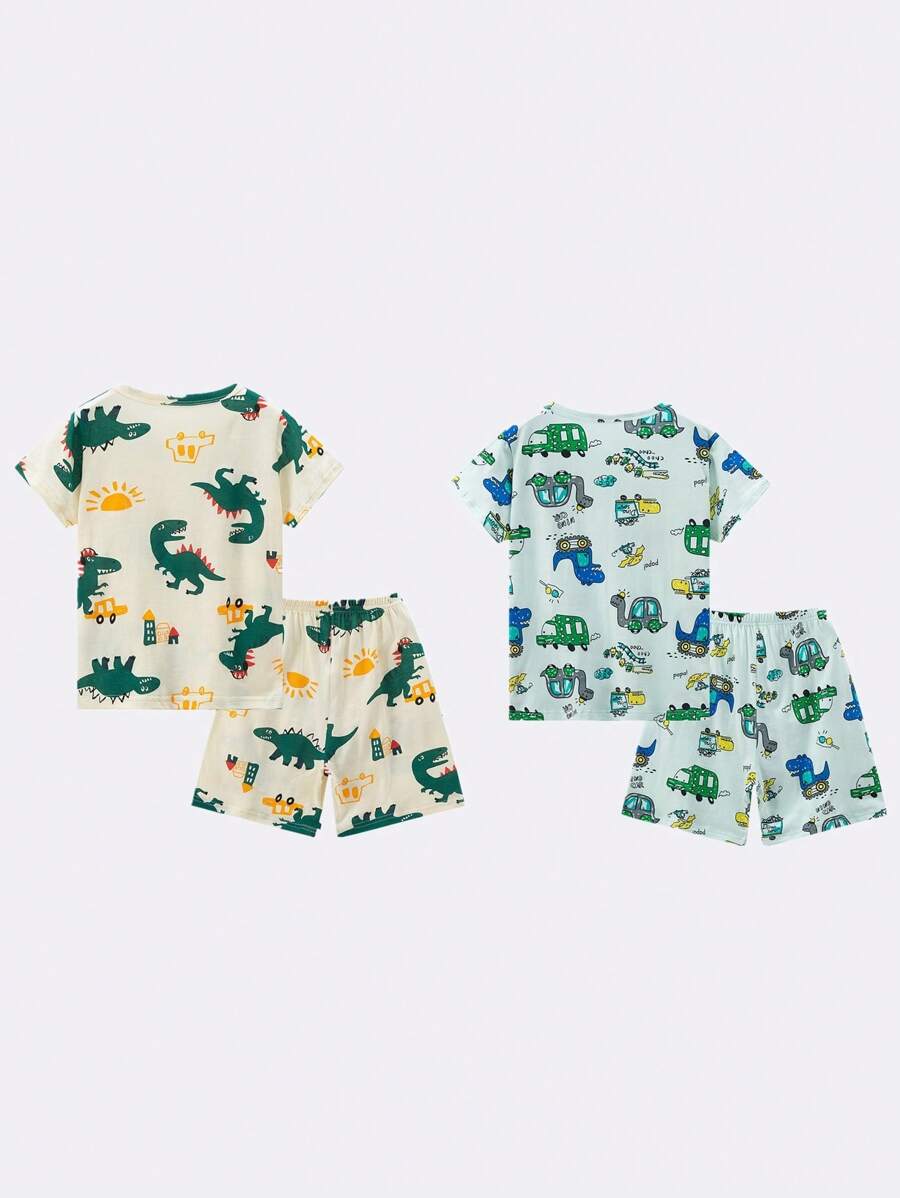 4pcs Young Boys Summer Pajama Set, Lightweight Short Sleeve T-Shirt And Shorts, Cartoon Dinosaur Pattern