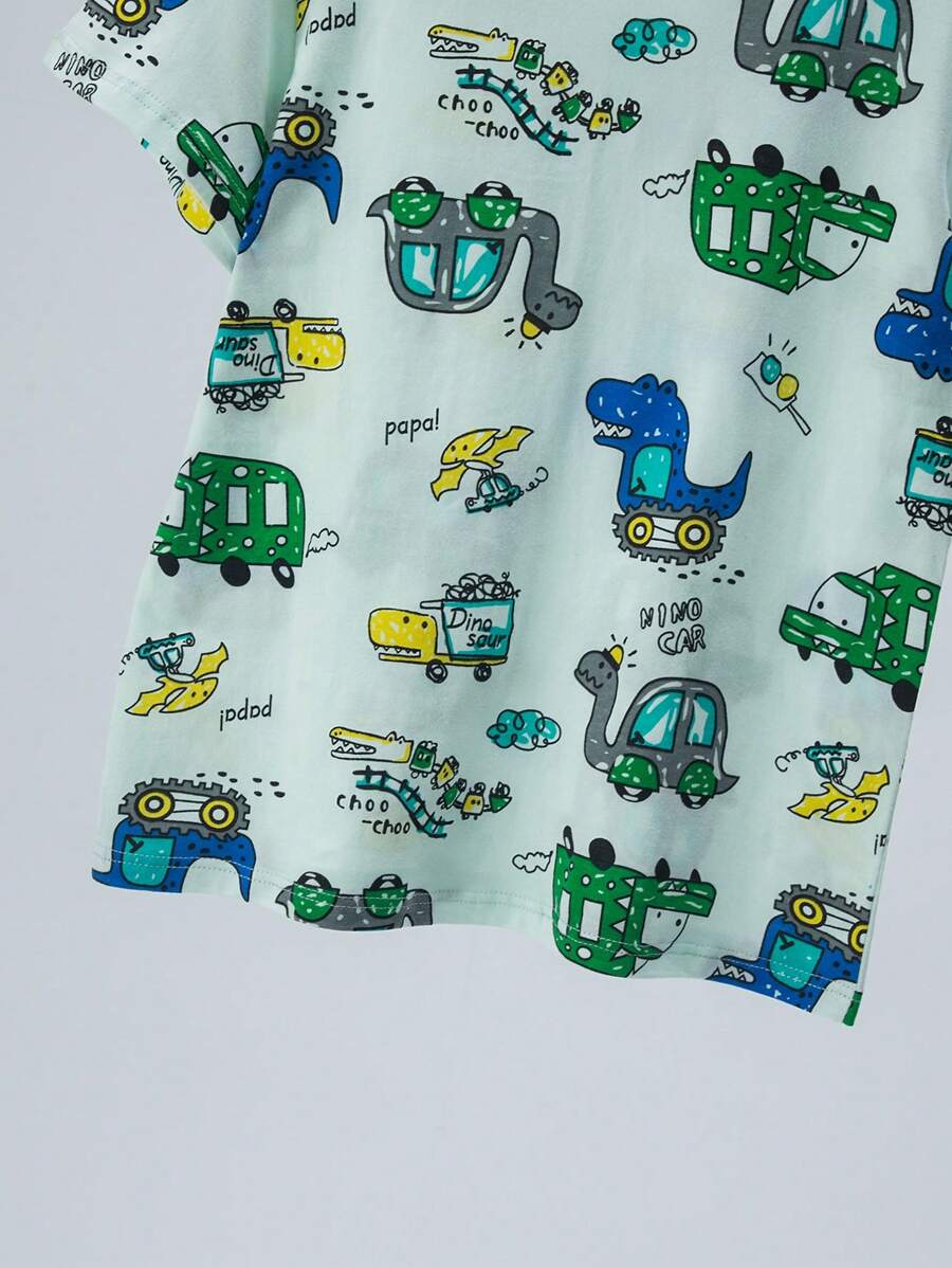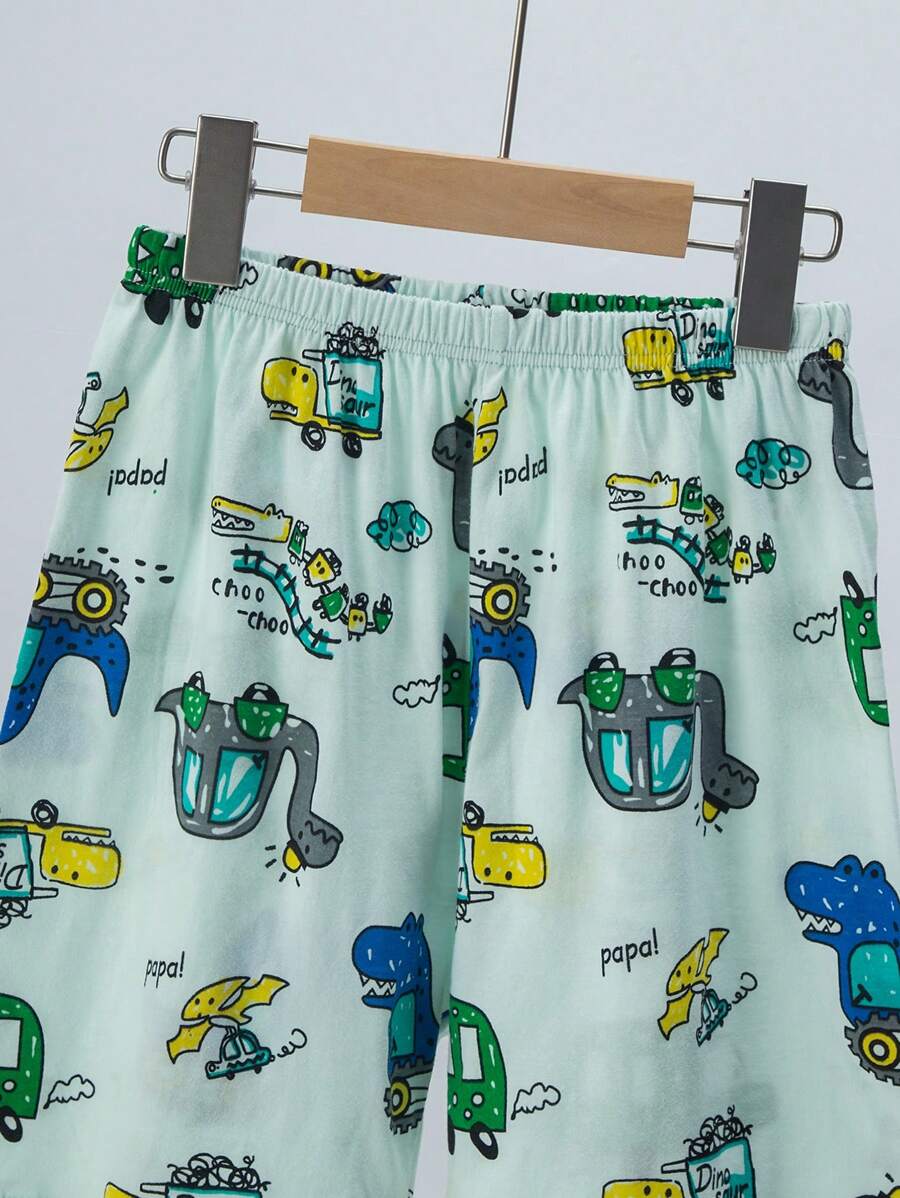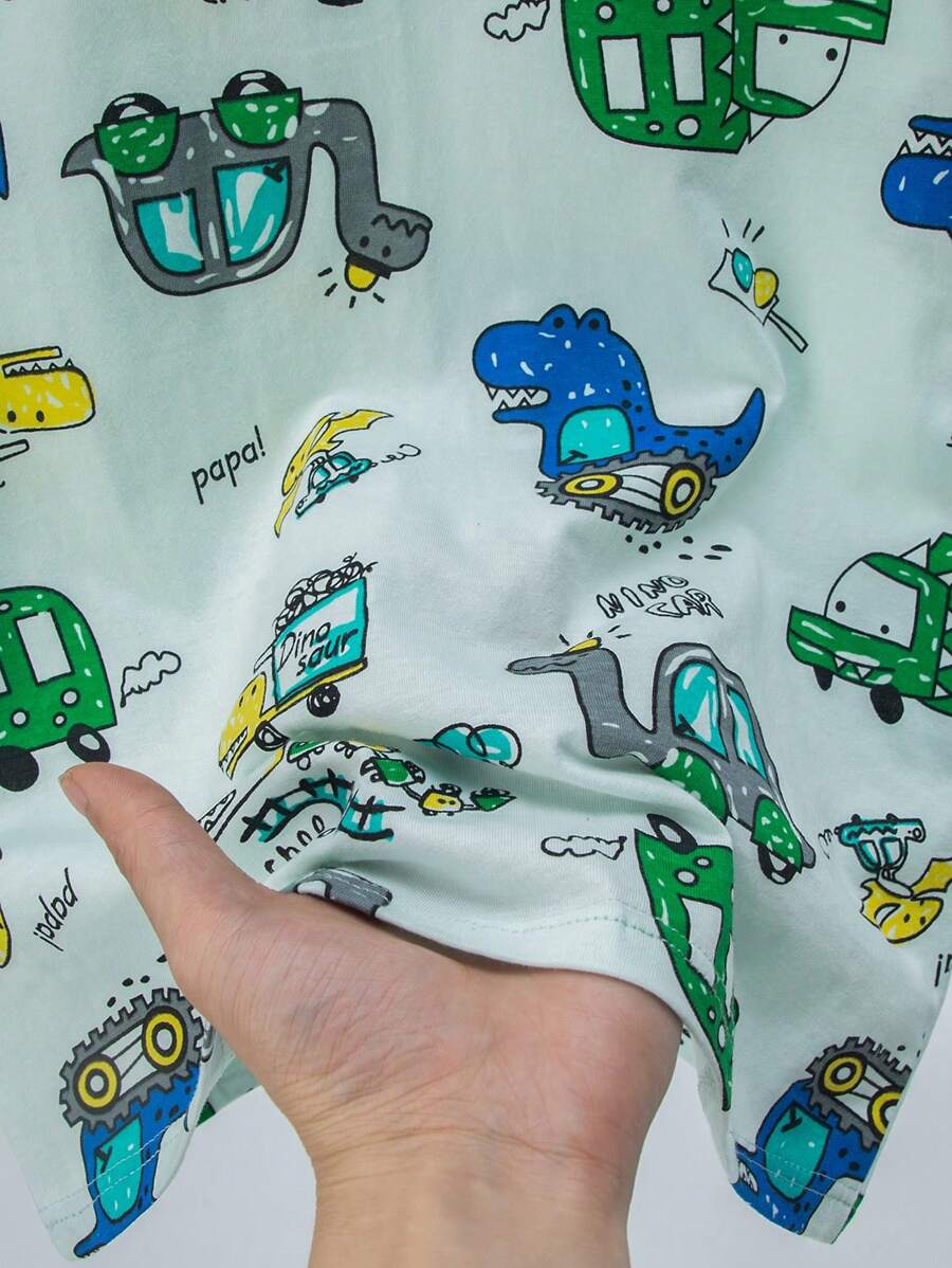 4pcs Young Boys Summer Pajama Set, Lightweight Short Sleeve T-Shirt And Shorts, Cartoon Dinosaur Pattern