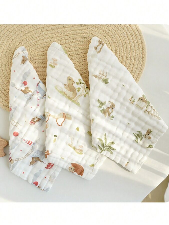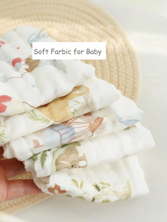 Home / SHEIN / Baby Supplies / 5 Packs Randomly Sent Cartoon Cute Animal Pattern Baby Bibs Newborn Pure Super Soft Small Square Towel Baby Special Face Wash Towel Children Products Gauze Towel