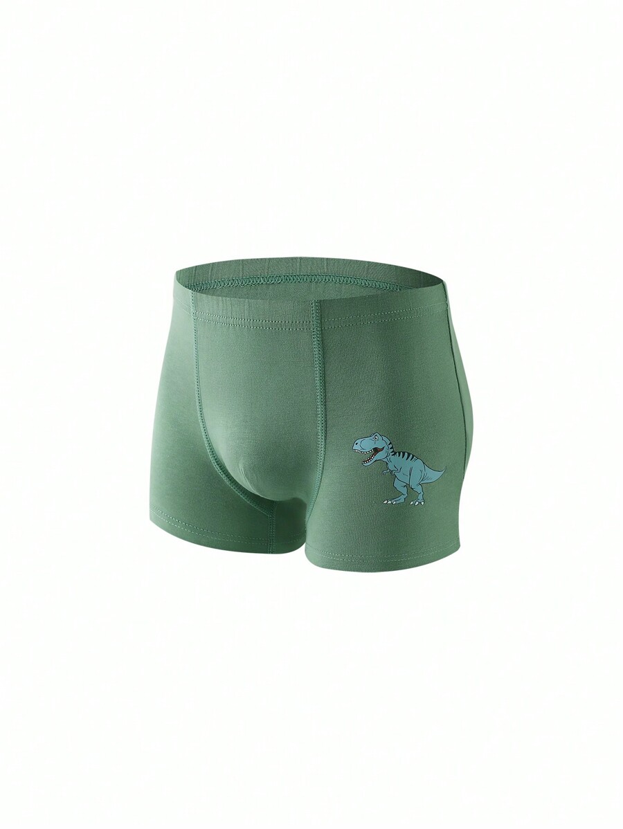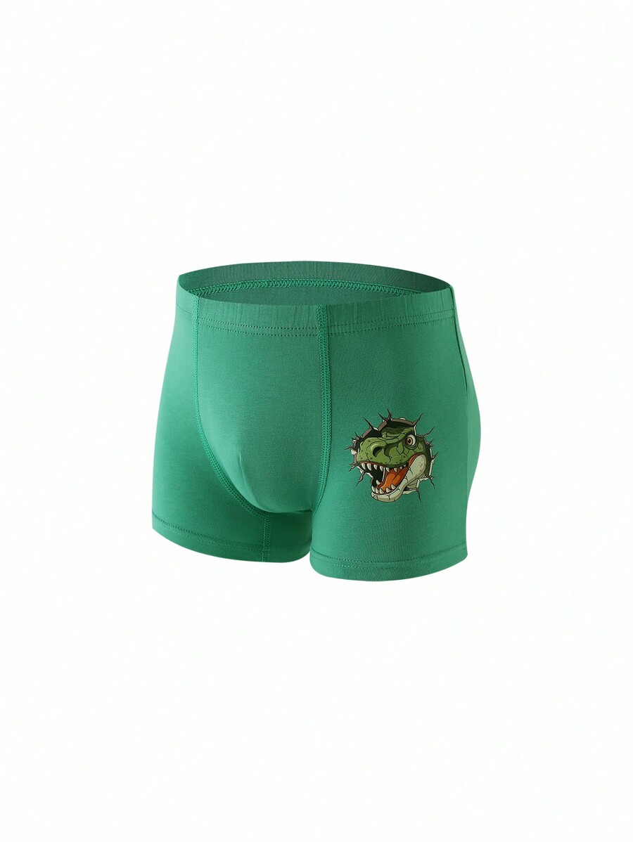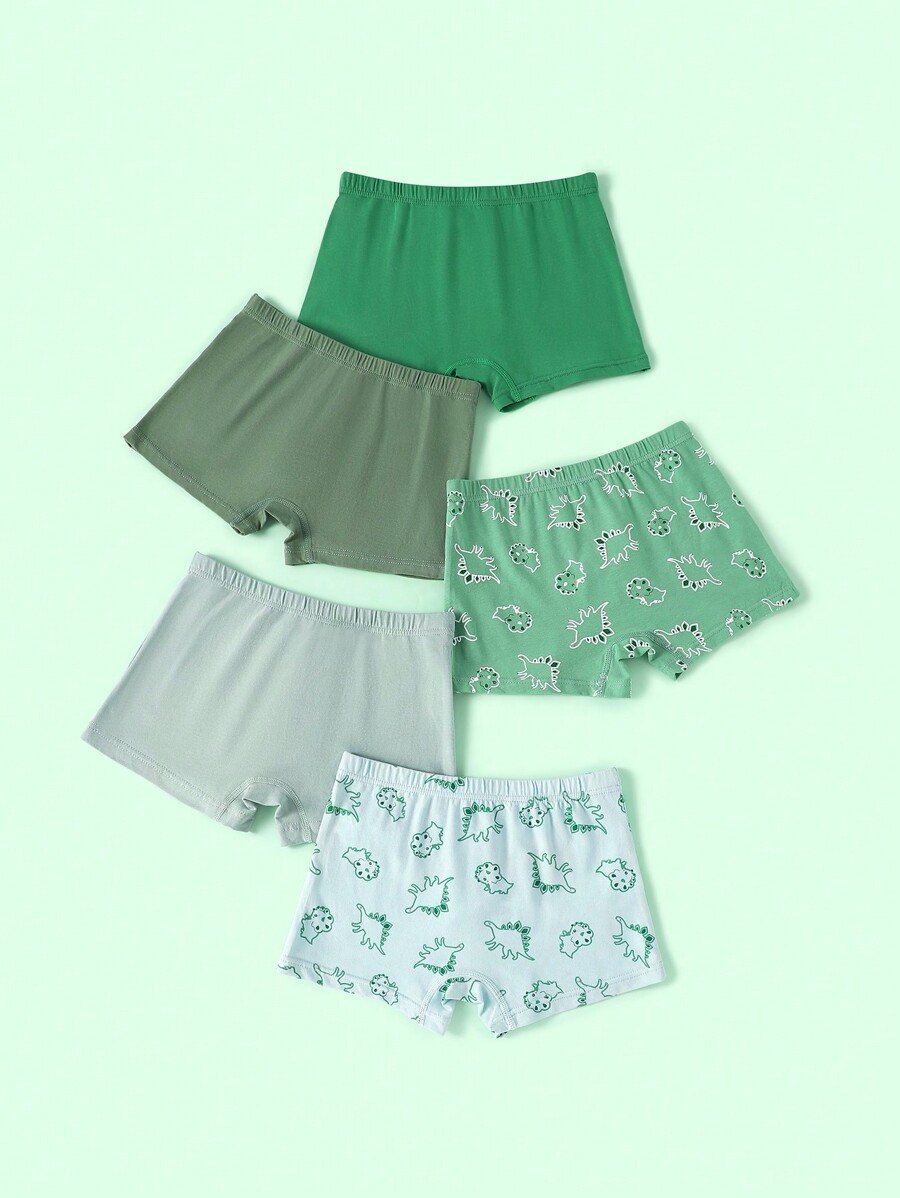 5pcs Young Boy Fun Dinosaur Graphic Green Series Boxer Brief Underwear