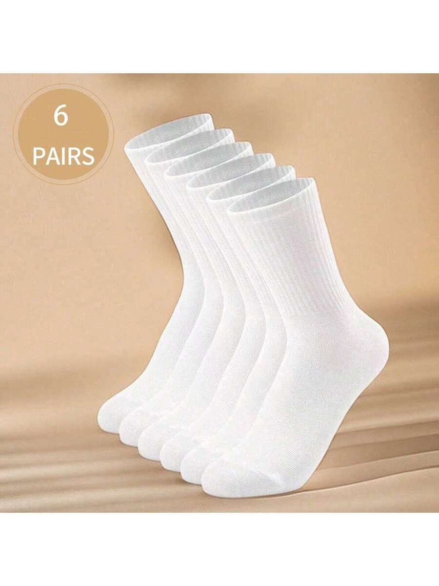 6 Pairs Men’s Plain White Breathable Crew Socks