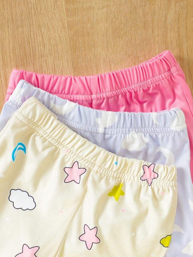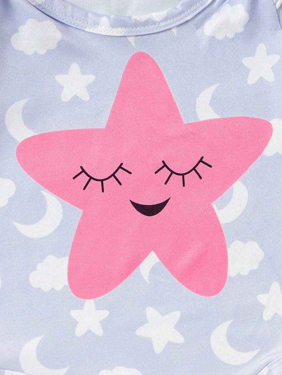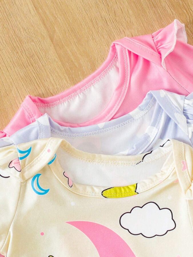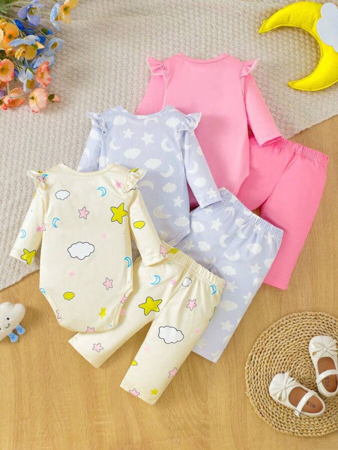 / 6pcs Newborn Baby Girl Soft & Comfy Star, Moon, Cloud Print Long Sleeve Tops And Pants Set