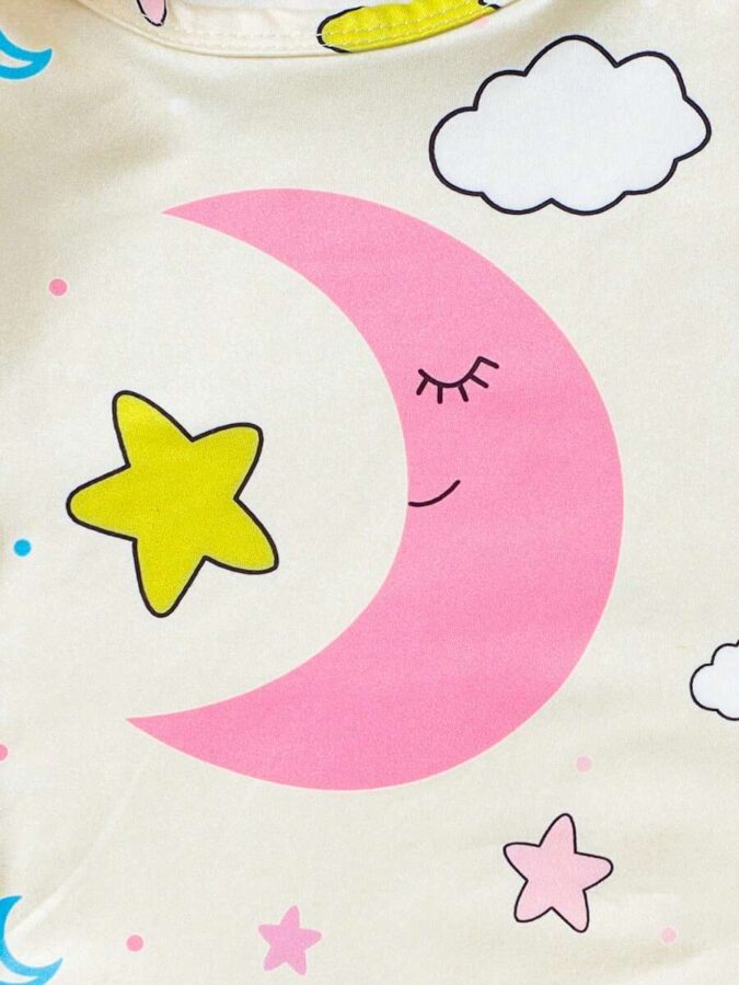 6pcs Newborn Baby Girl Soft & Comfy Star, Moon, Cloud Print Long Sleeve Tops And Pants Set quantity