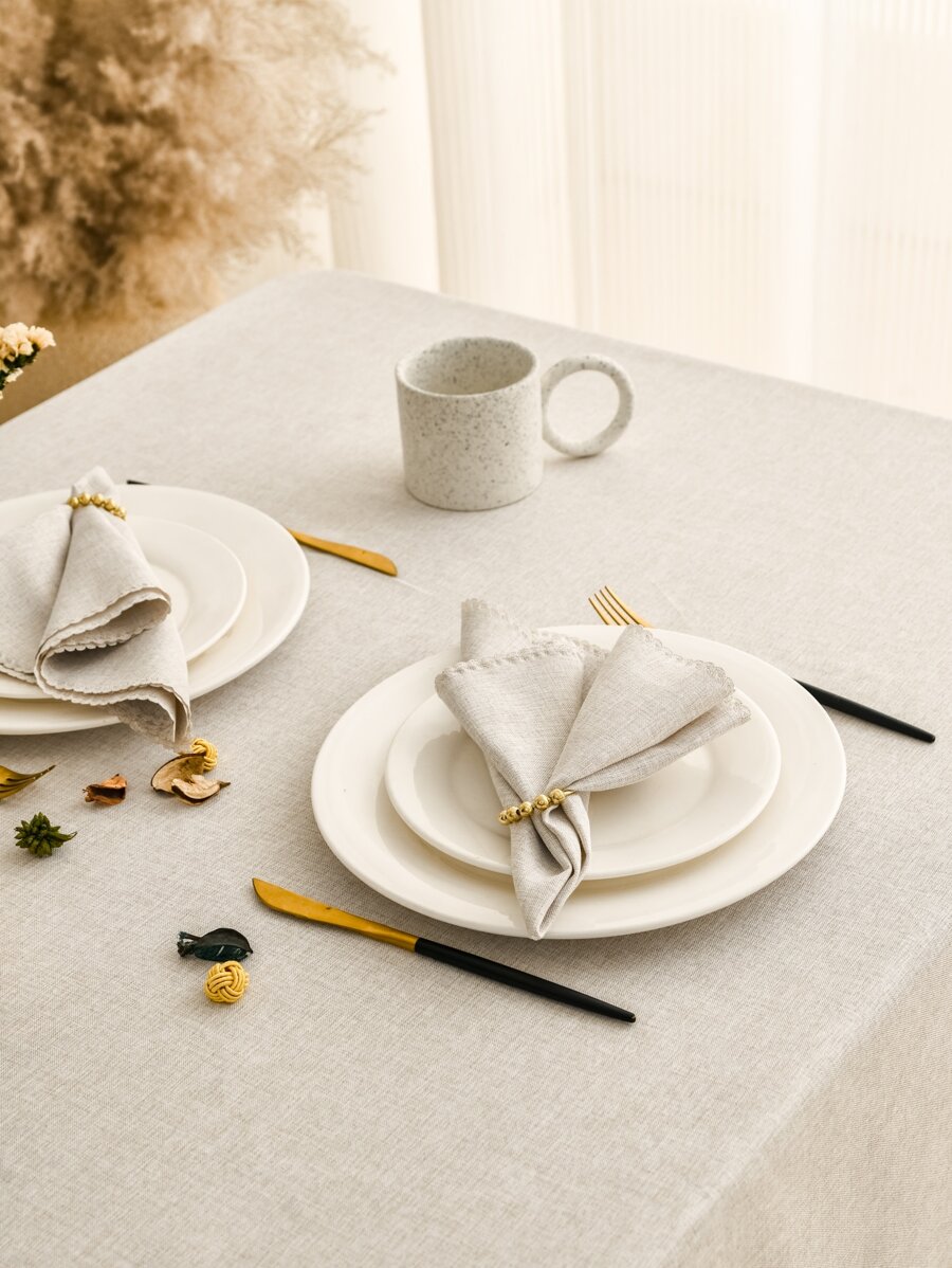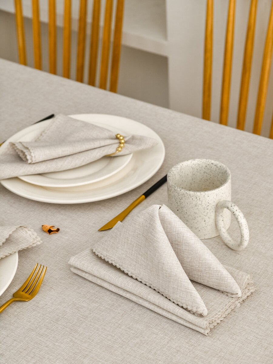 / 6pcs/set Fabric Table Napkin, Minimalist Scallop Trim Cloth Napkin For Dining Table