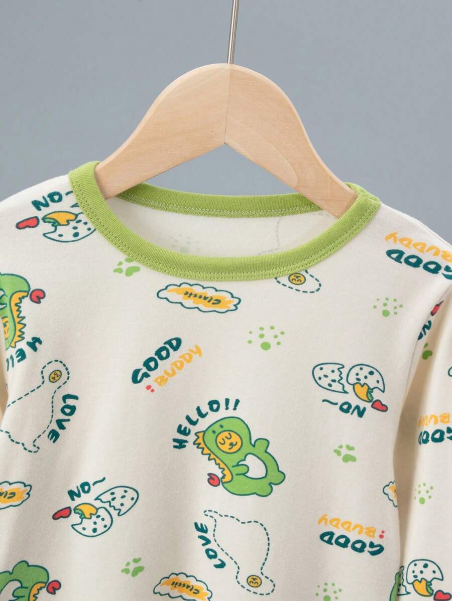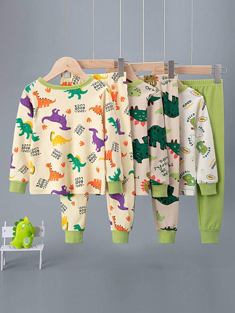 6pcs/Set Young Boys Cartoon Pajamas Set, Cute Dinosaur Print Long Sleeve Top And Pants Home Sleepwear, Autumn