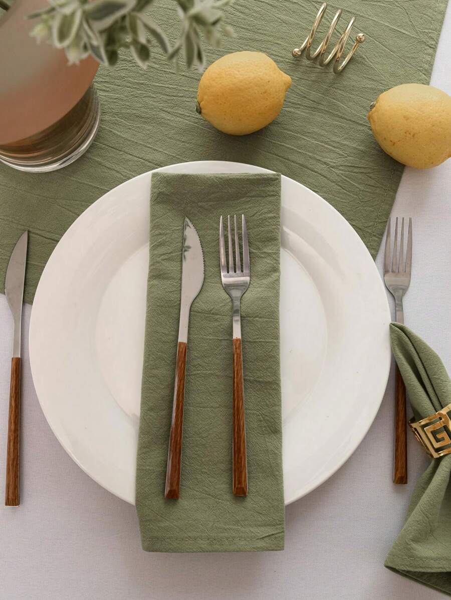 6pcs Washed Crinkle Rolled Edge Solid Color Napkins For Home And Hotel Use