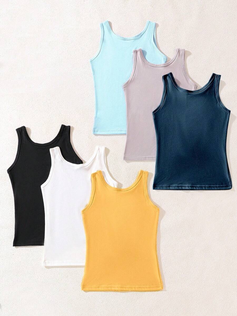 / 6pcs Young Boy Minimalist Solid Color Comfortable Sleeveless Tank Tops