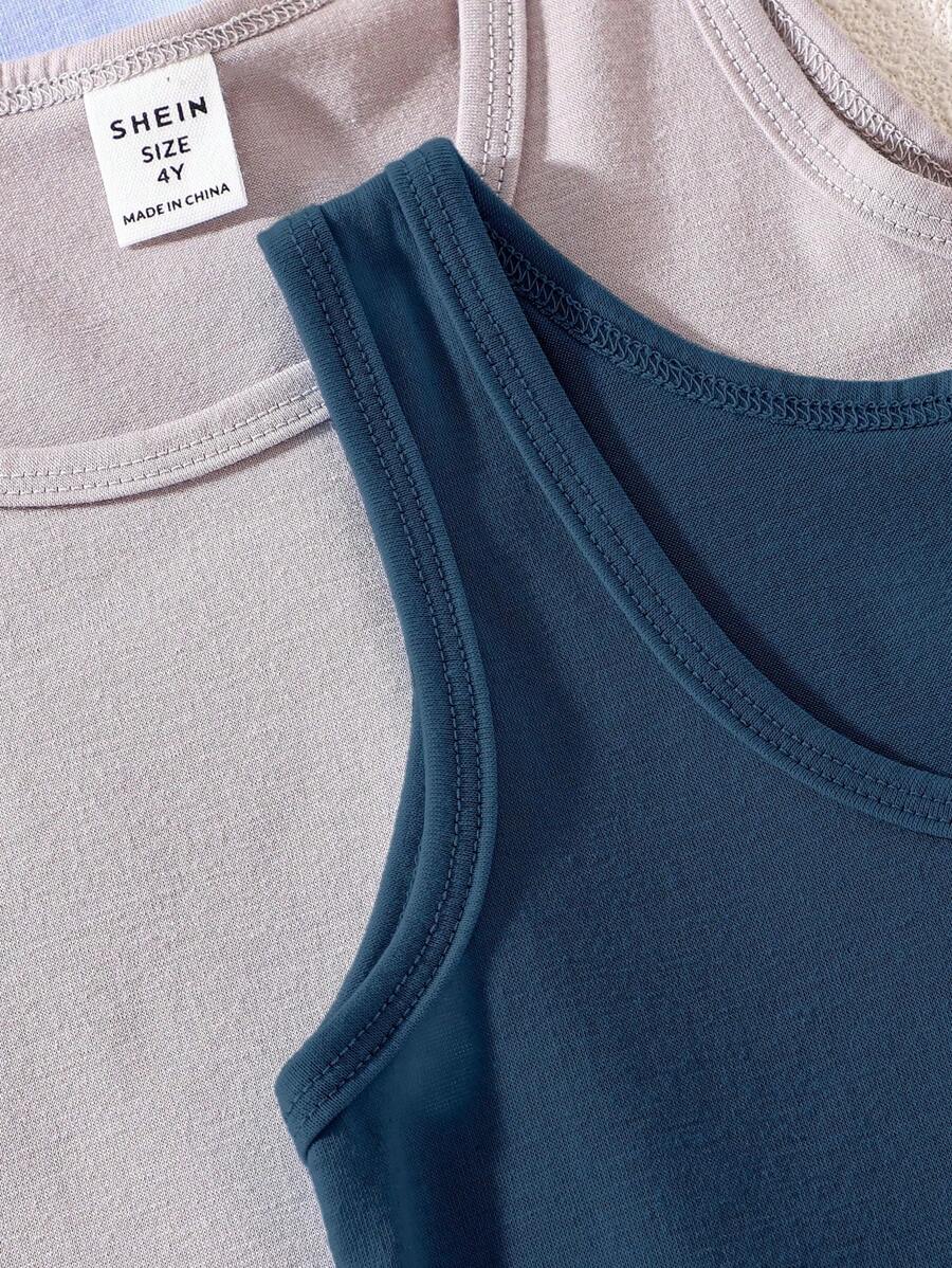 6pcs Young Boy Minimalist Solid Color Comfortable Sleeveless Tank Tops quantity