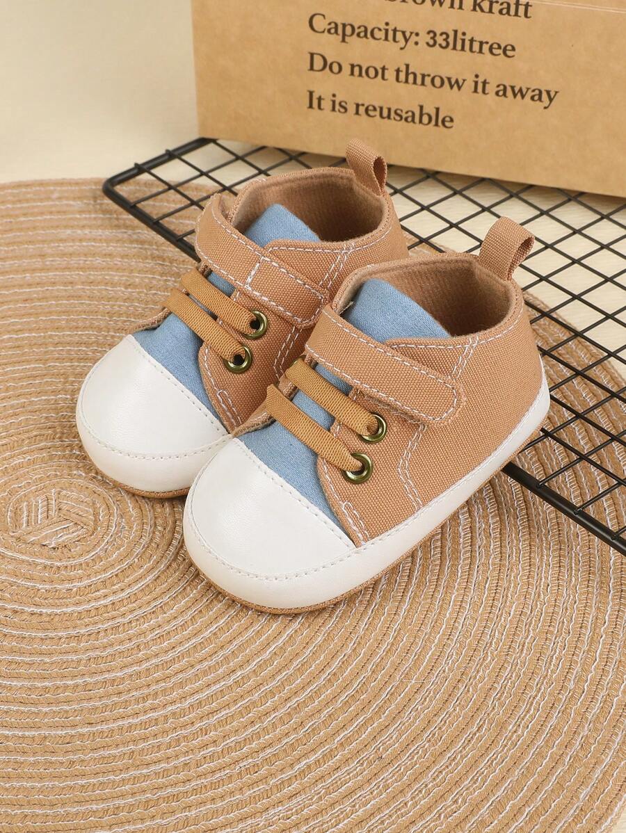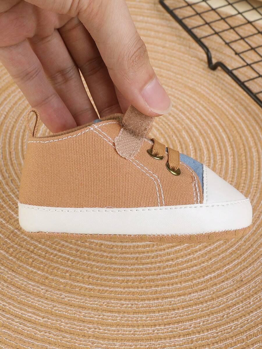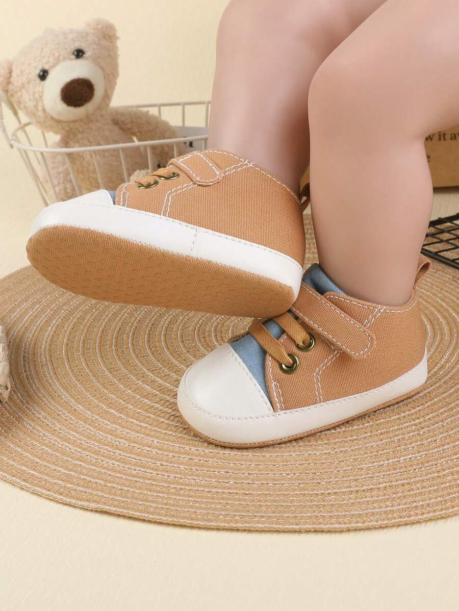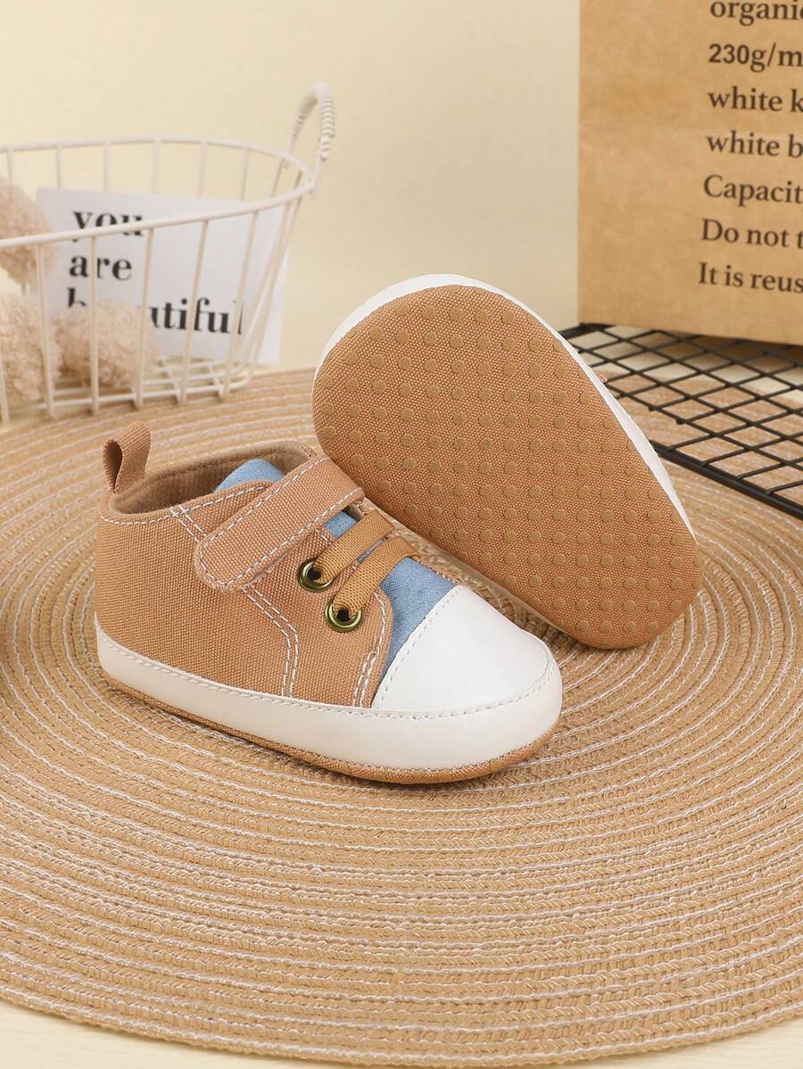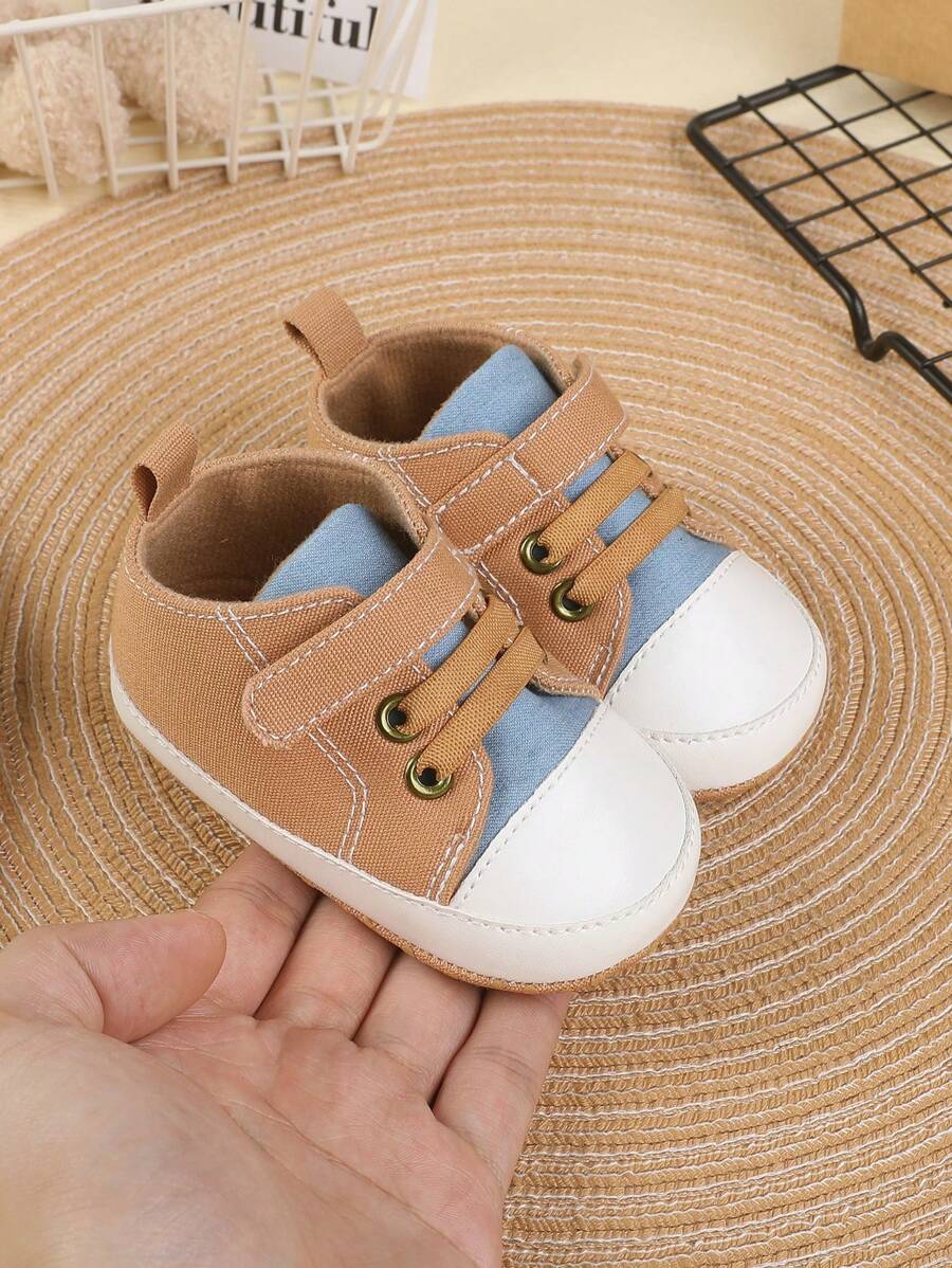 / A Pair Of Infant Boy’s Color-Blocked Denim Hook And Loop Design Flat Soft Sole Non-Slip Versatile Fashion Sneakers Suitable For Autumn