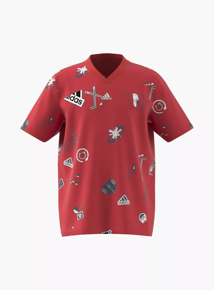 Adidas All-Over Print V-neck T-shirt with Short Sleeves