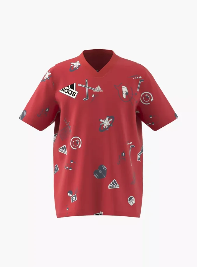 The adidas All-Over Print V-neck T-shirt with Short Sleeves is the perfect blend of comfort, modern design, and sporty style. Featuring a bold all-over print and a flattering V-neck cut, this t-shirt adds a fresh twist to everyday wear. Crafted with premium, breathable fabric, it ensures all-day comfort whether you’re hitting the gym, heading outdoors, or styling it casually. Designed with adidas’ signature quality, this tee offers both durability and style, making it a wardrobe essential for those who value fashion and function.