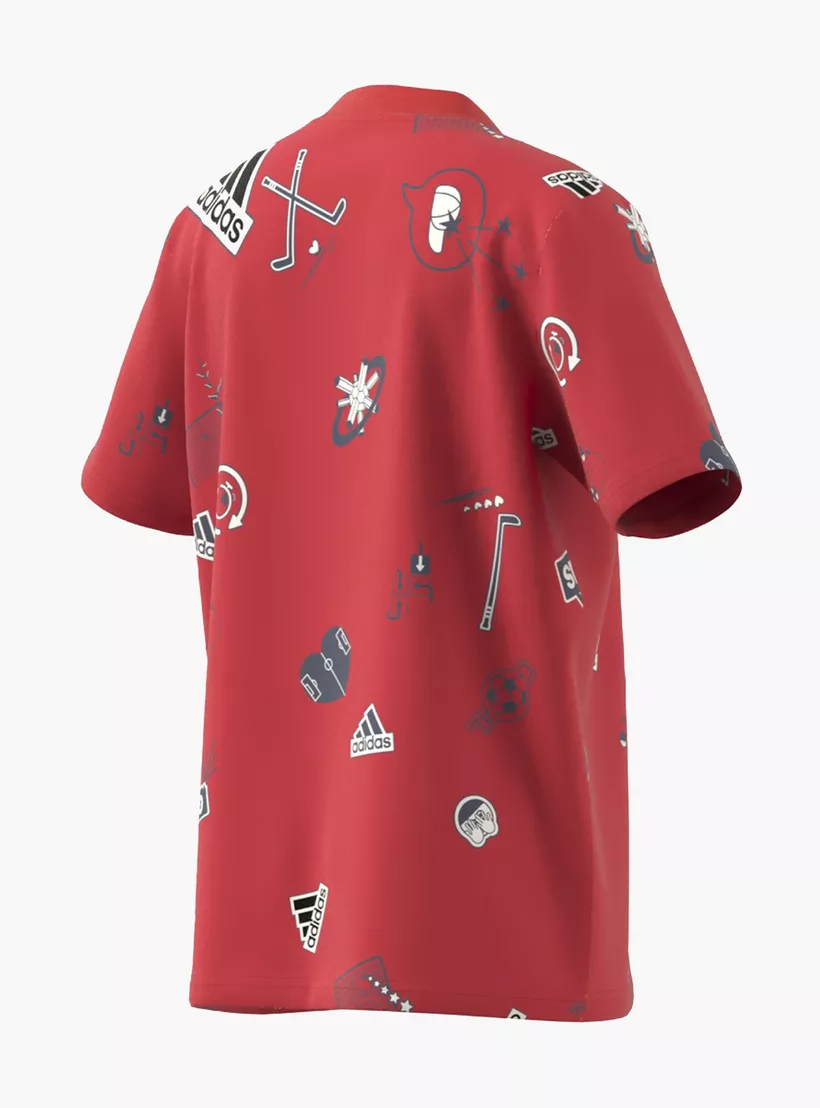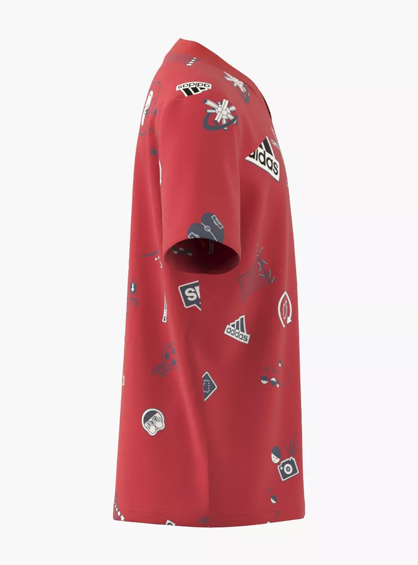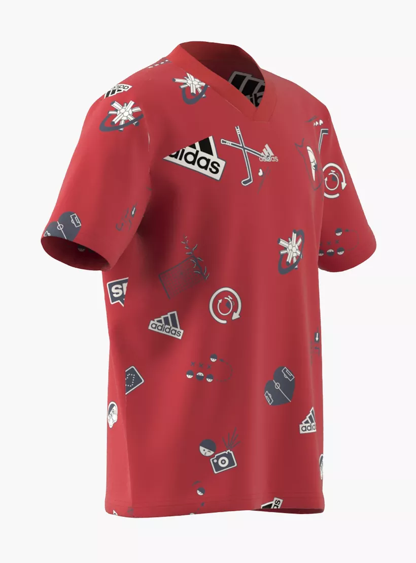 Adidas All-Over Print V-neck T-shirt with Short Sleeves