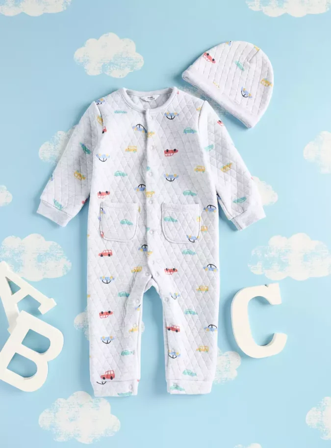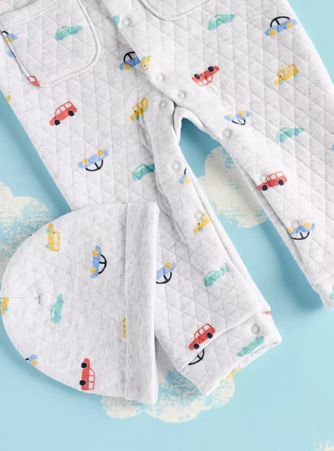 Two-Piece Set: Includes a full-length sleepsuit and a matching beanie.