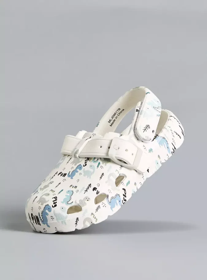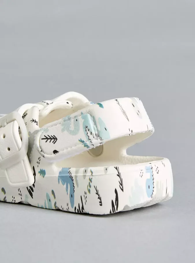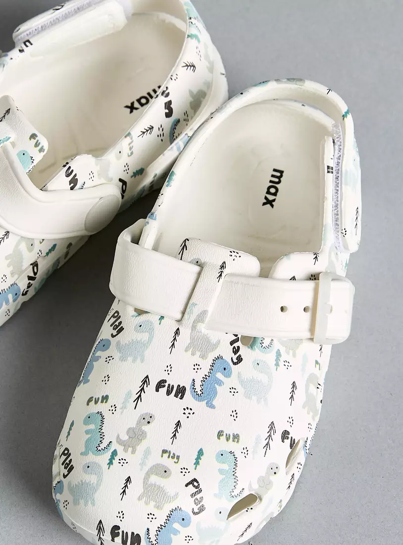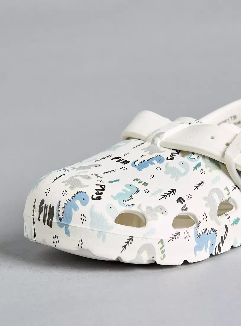 All-Over Dinosaur Print Ankle Strap Clogs