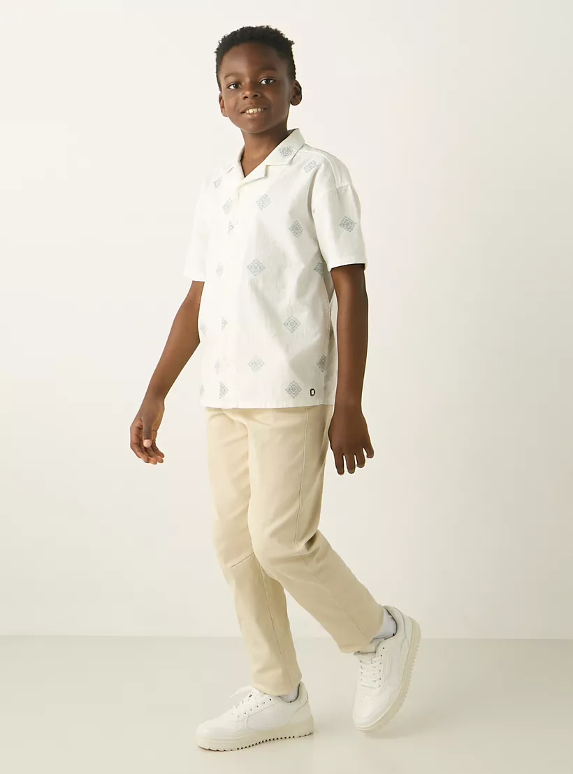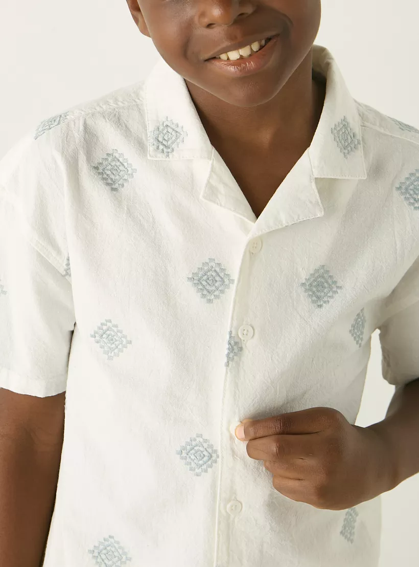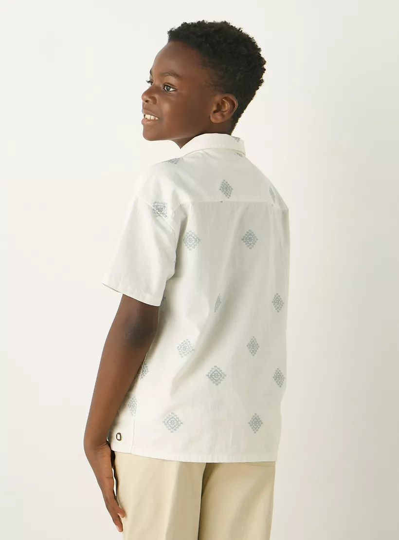 All-Over Print Cotton Camp Collar Shirt with Short Sleeves
