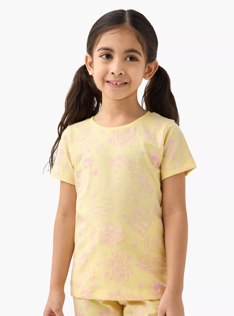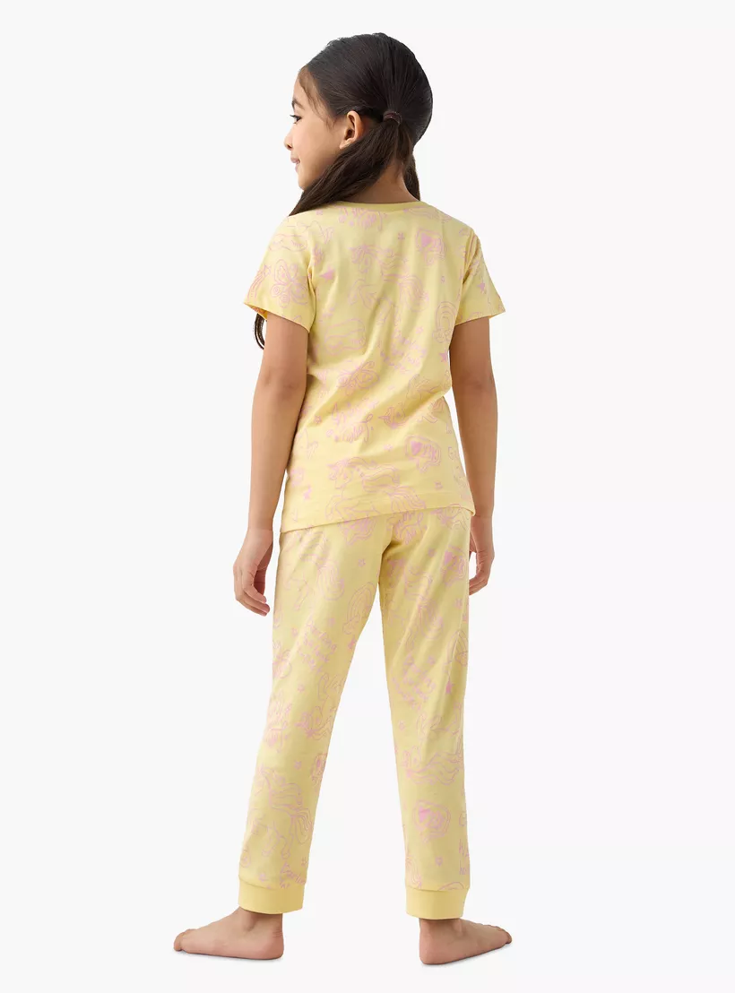 Coordinated Set: Matching T-shirt and pyjama design for a complete, polished look.