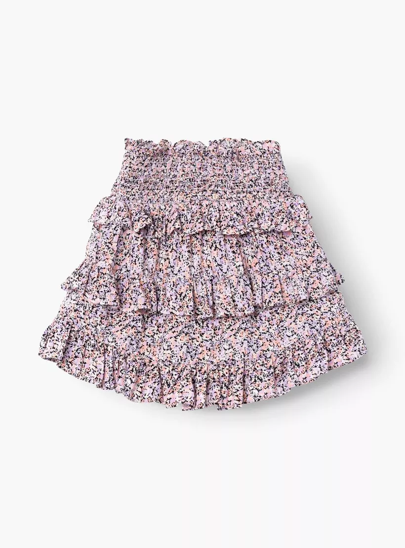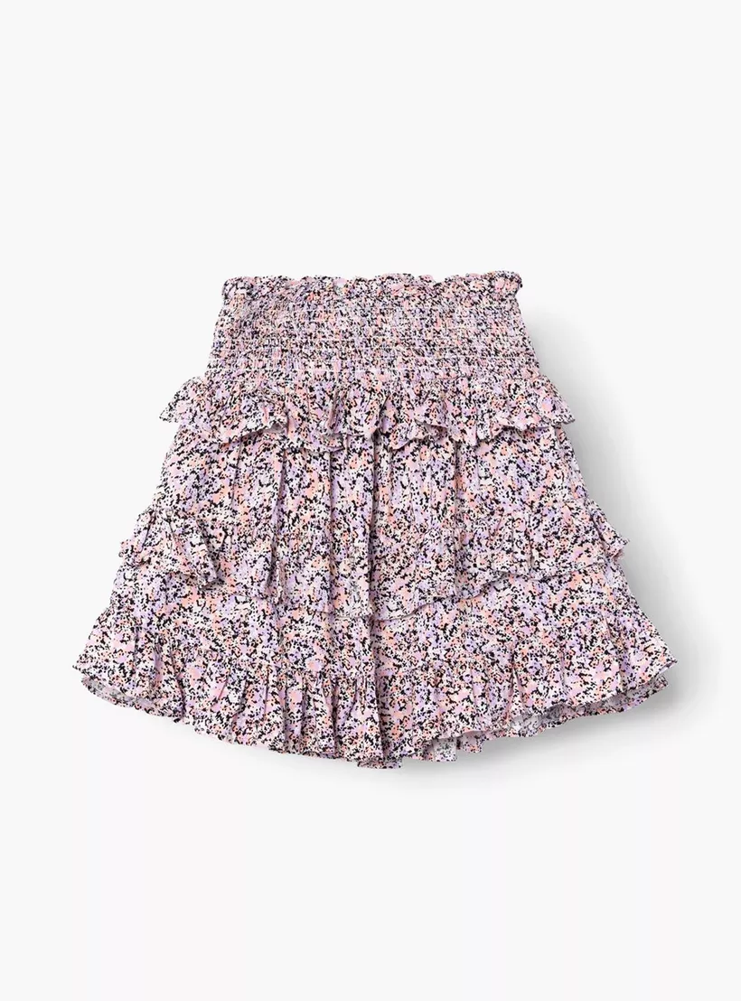 All-Over Print Tiered Skirt with Ruffle Detail and Elasticated Waistband