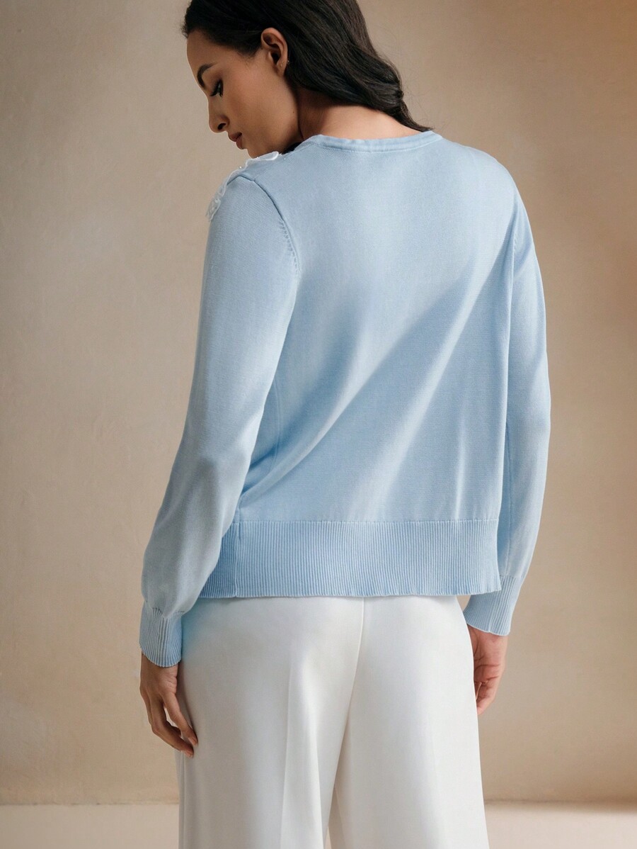 / Anewsta Blue Floral 3D Pearl & Sequin Embroidered