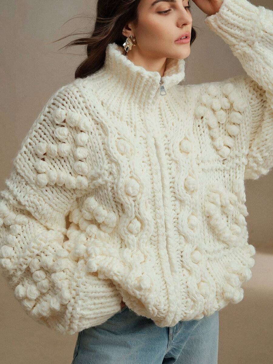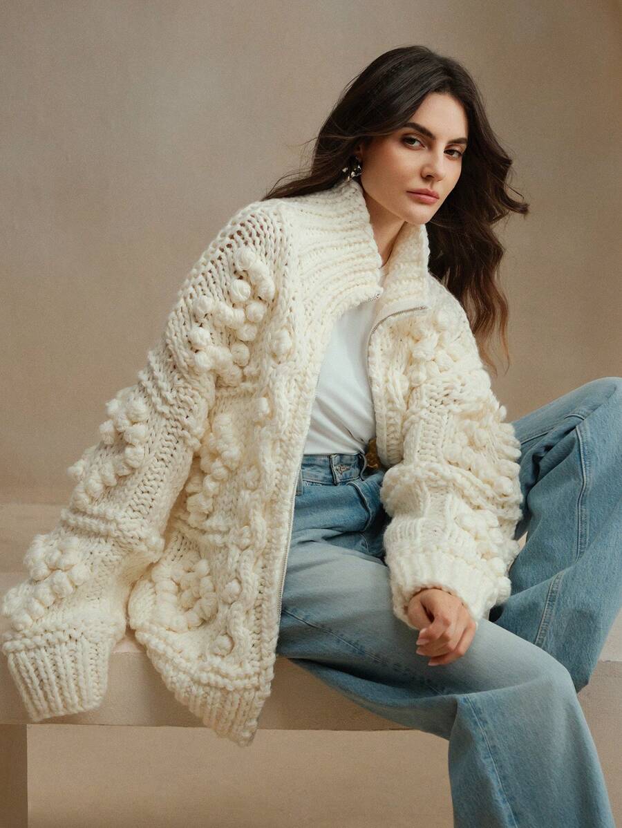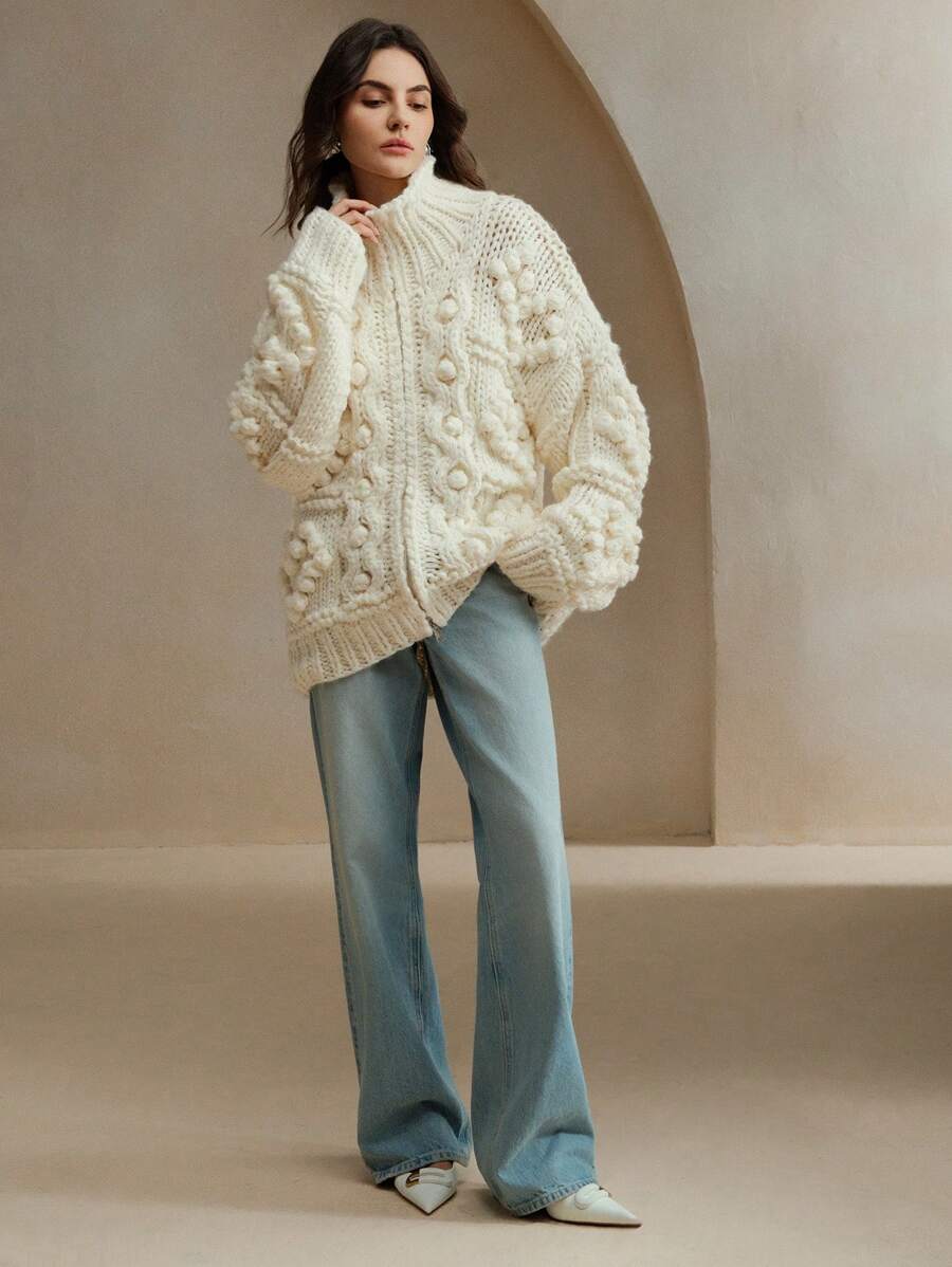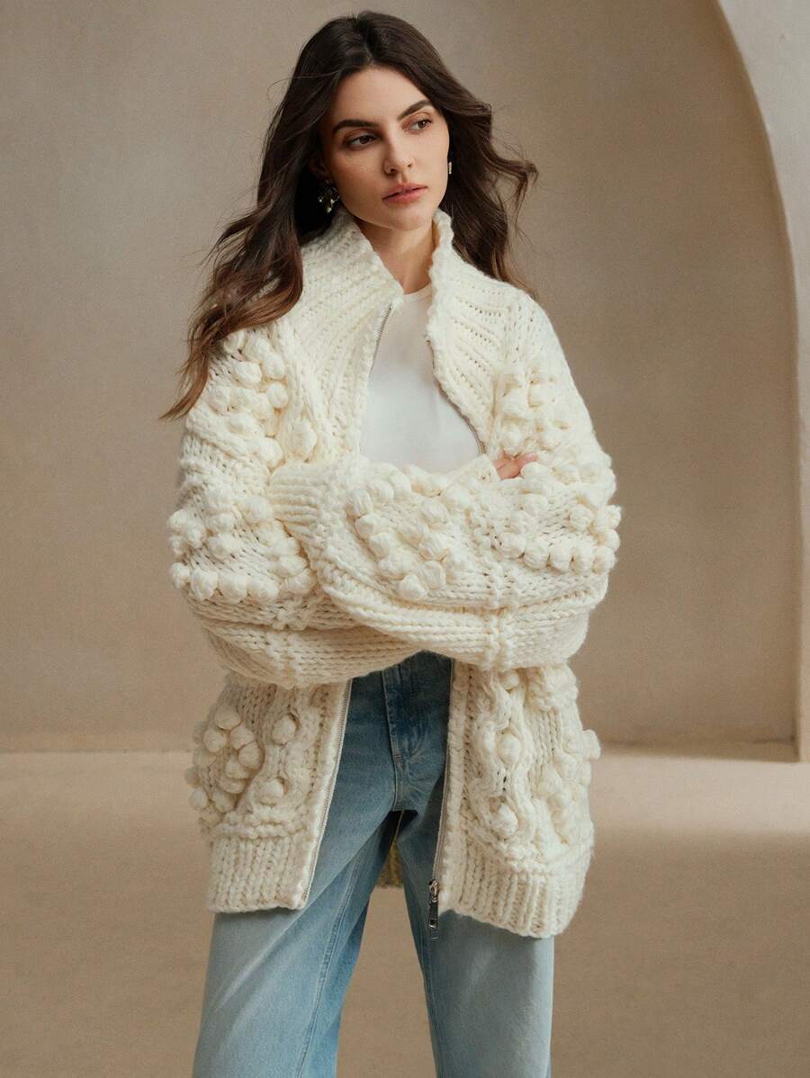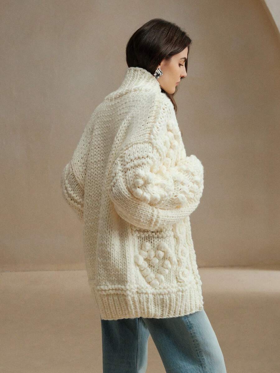 / Anewsta Elegant 3D Floral Decoration Hand-Crocheted Women Cardigan Sweater