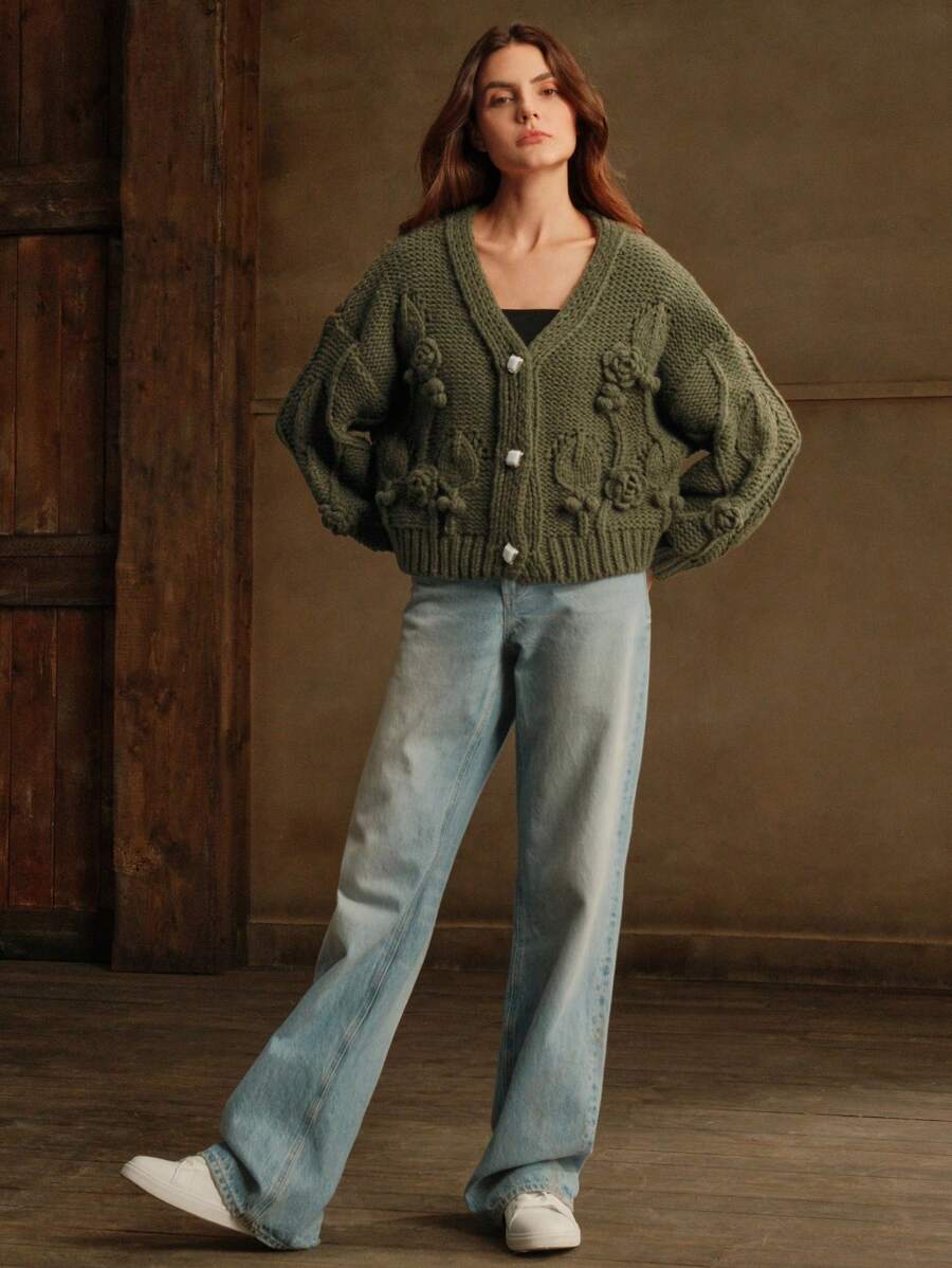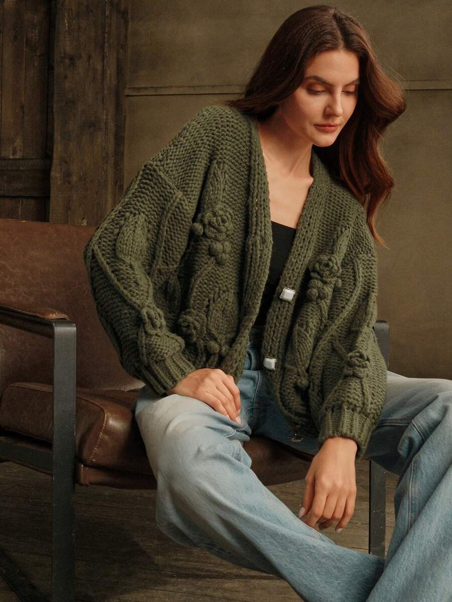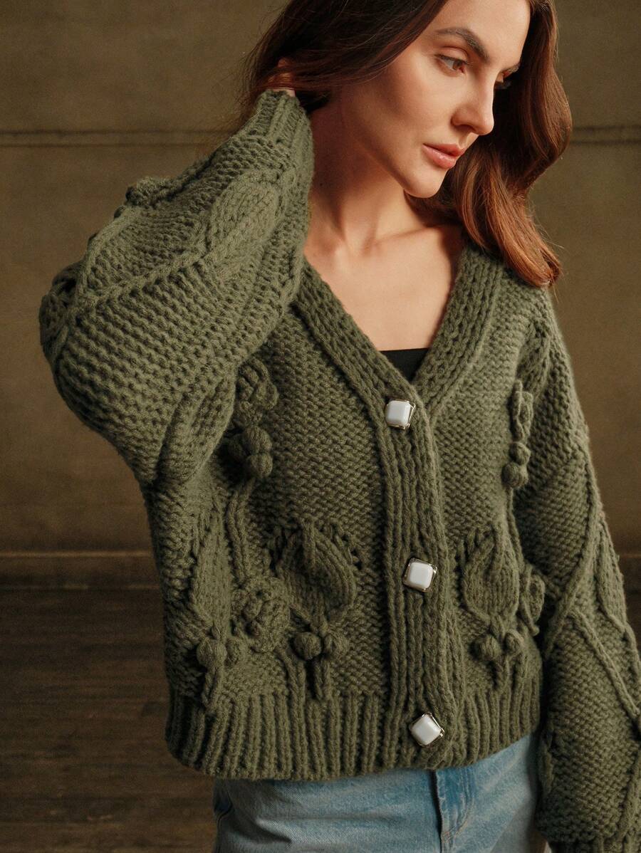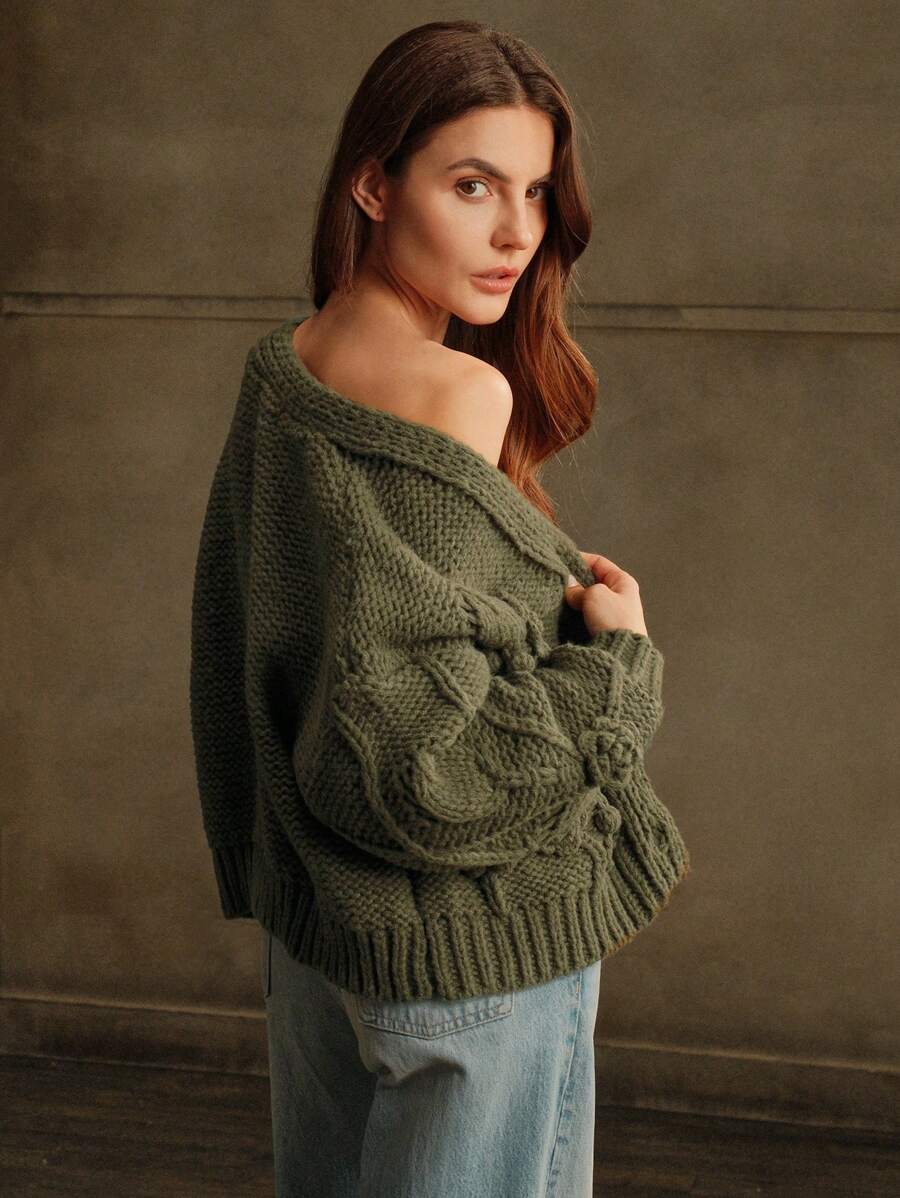 / Anewsta Women’s V-Neck Long Sleeve Thickened Cable Knit Loose Casual Sweater