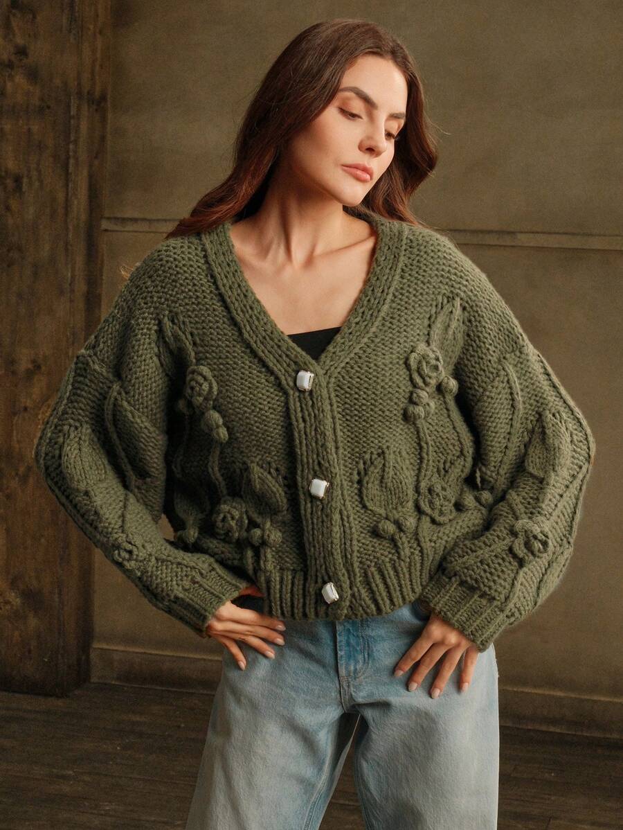 Anewsta Women’s V-Neck Long Sleeve Thickened Cable Knit Loose Casual Sweater