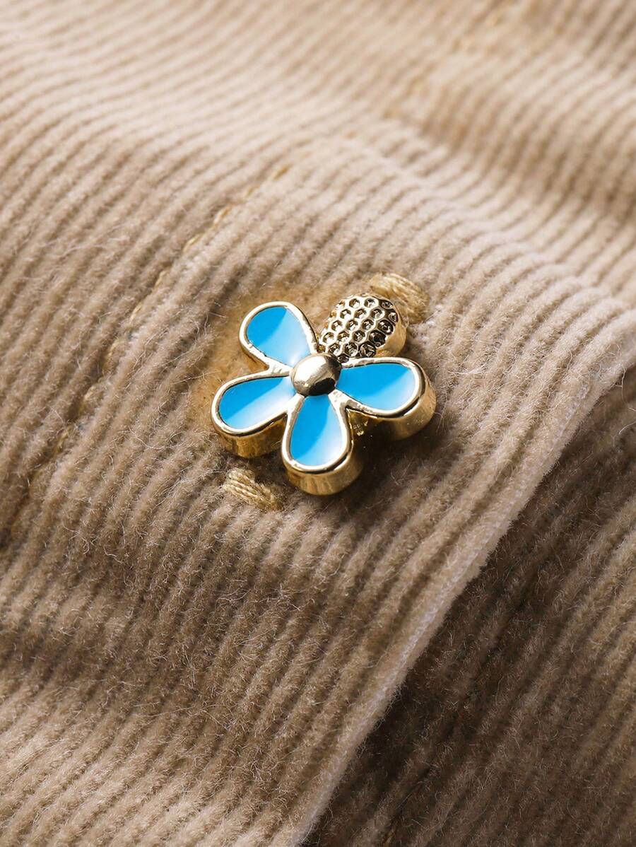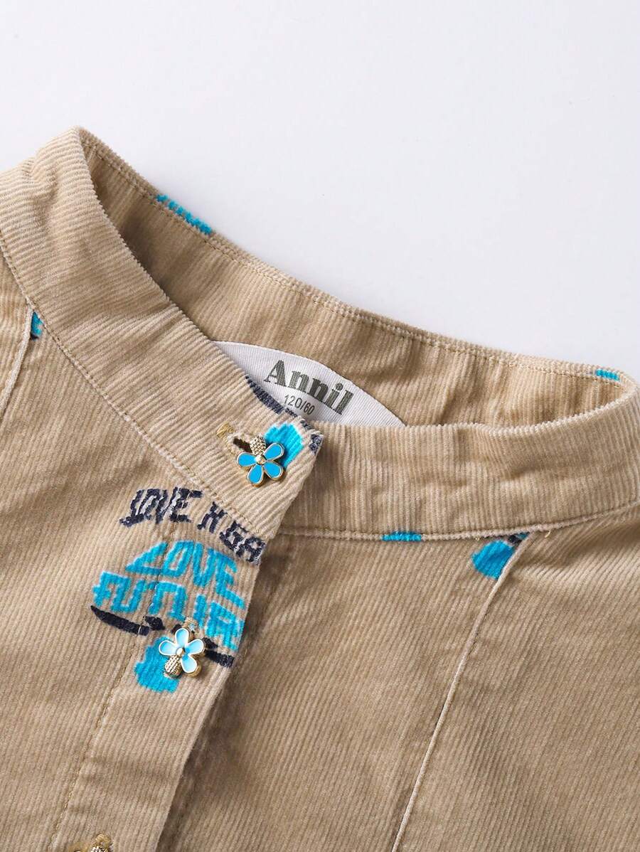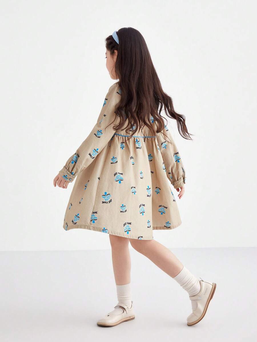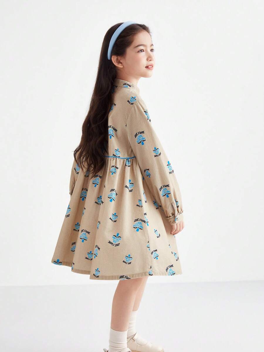 / Annil Tween Girl Spring And Autumn Fashionable Rural Style Cute Flower Buttons Kids Long Sleeved Dress Apricot