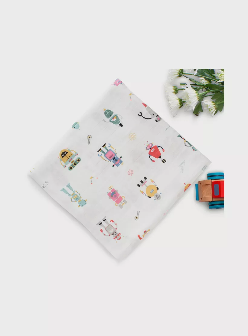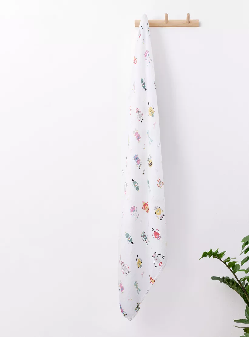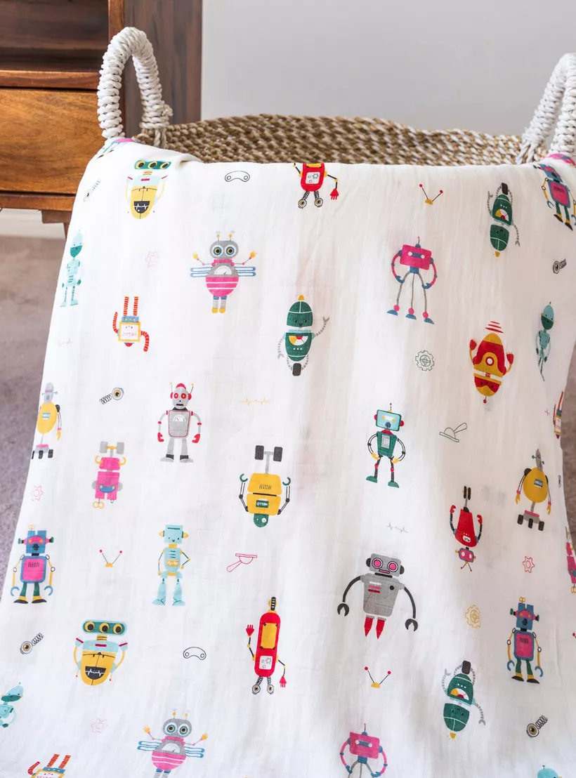 Anvi Baby Organic Bamboo Muslin Swaddle Wrap, Robo Land