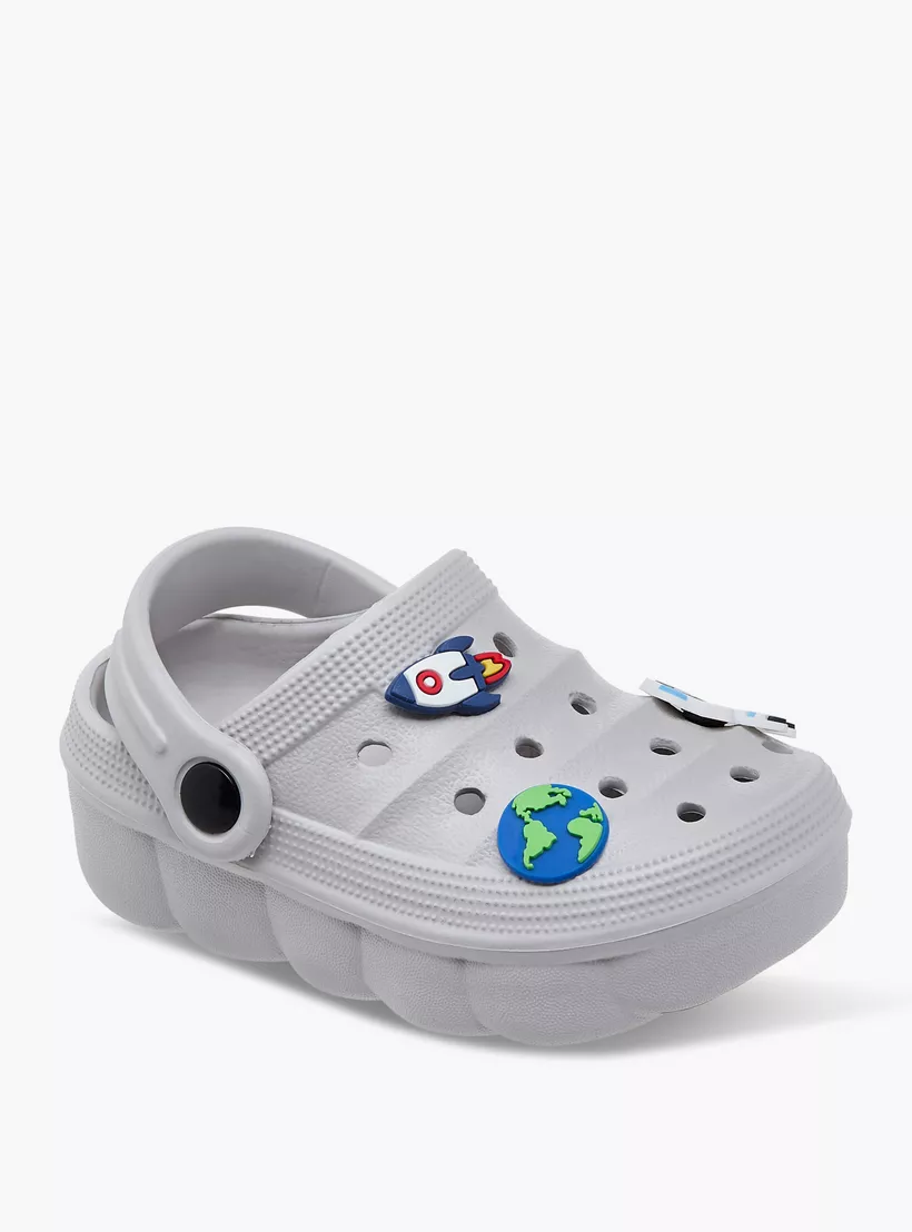The Aqua Space Accent Clogs with Backstrap are designed to blend fun and functionality for young explorers. Featuring a playful space-themed design with Jibbitz accents, these clogs are perfect for sparking imagination during outdoor adventures. Crafted from durable EVA material, they offer lightweight comfort and resilience to support your child’s early steps. The secure back strap ensures a snug fit, while the PU lining adds an extra layer of comfort for toddlers.