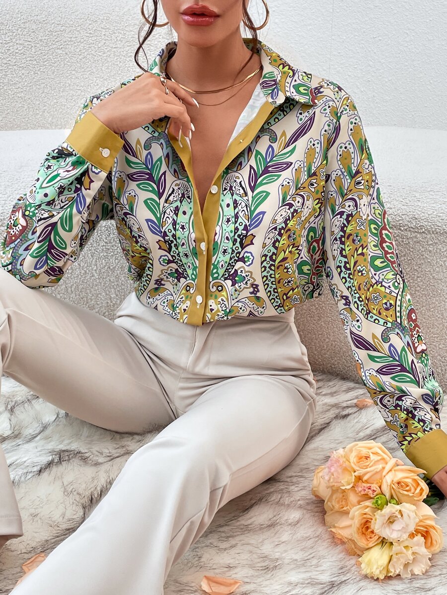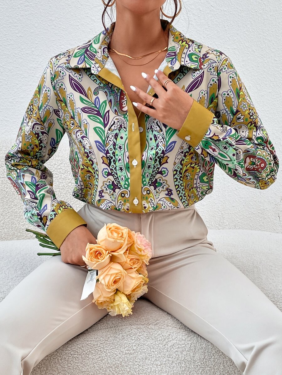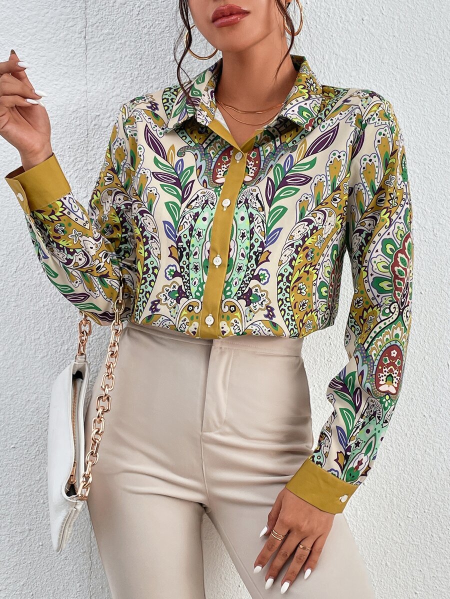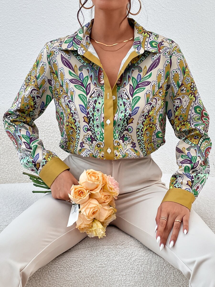 / Aveloria Allover Print Button Front Shirt Elegant Business Casual Women Button Up Shirt Women