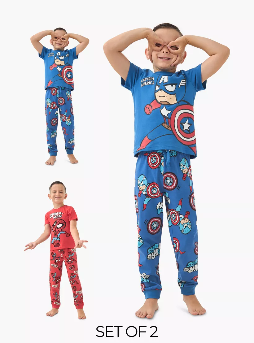 Avengers Print T-shirts and Pyjamas – Set of 2