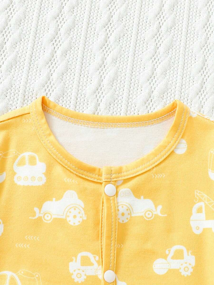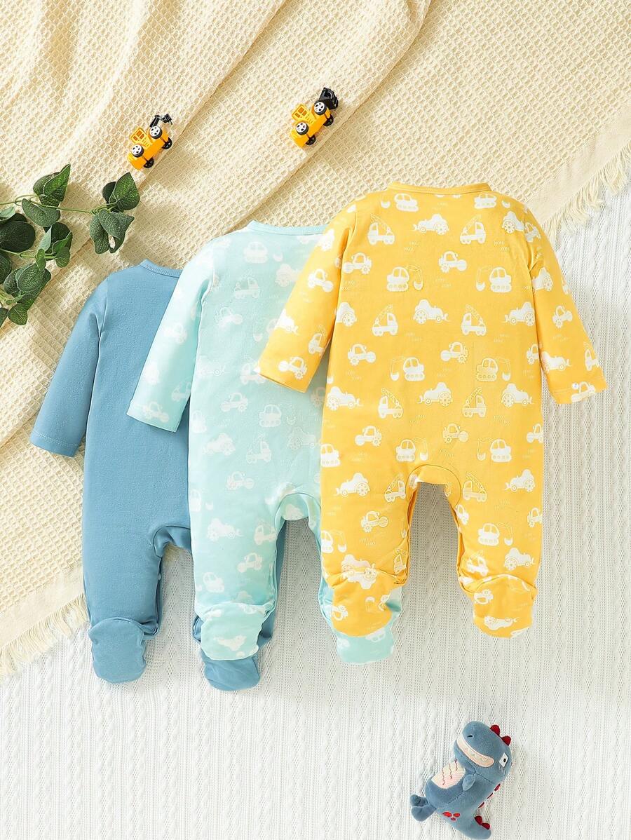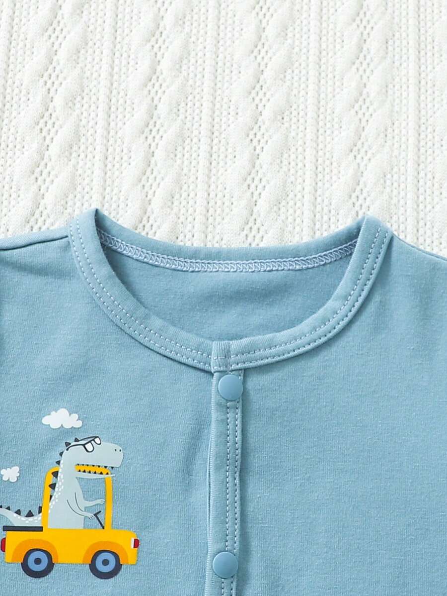 Baby Boy 3pcs Car and Dinosaur Print Button Front Sleep Jumpsuit