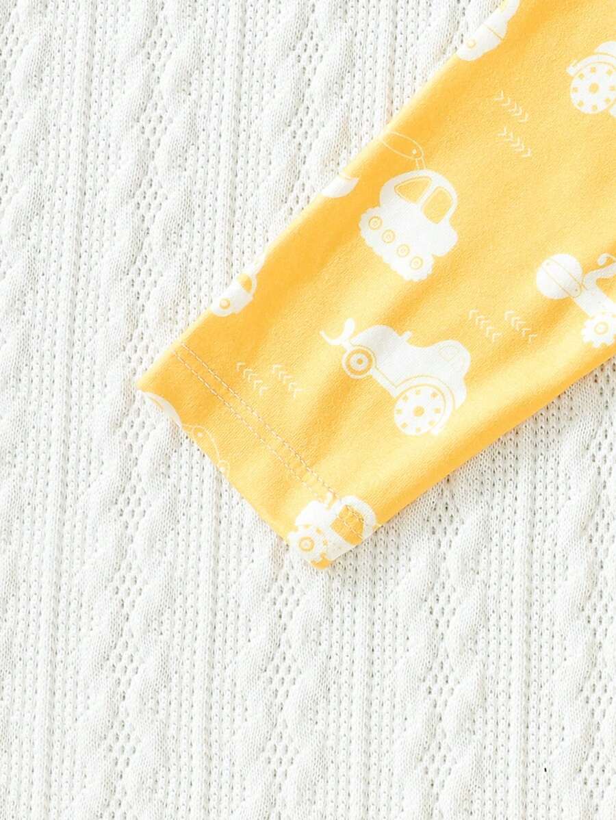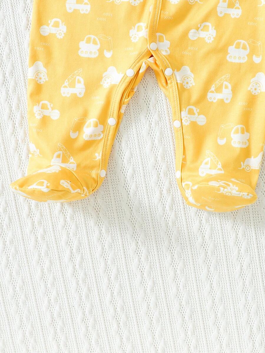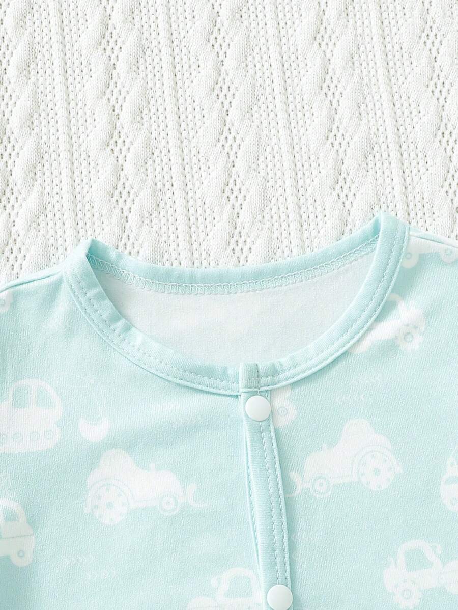 Baby Boy 3pcs Car and Dinosaur Print Button Front Sleep Jumpsuit
