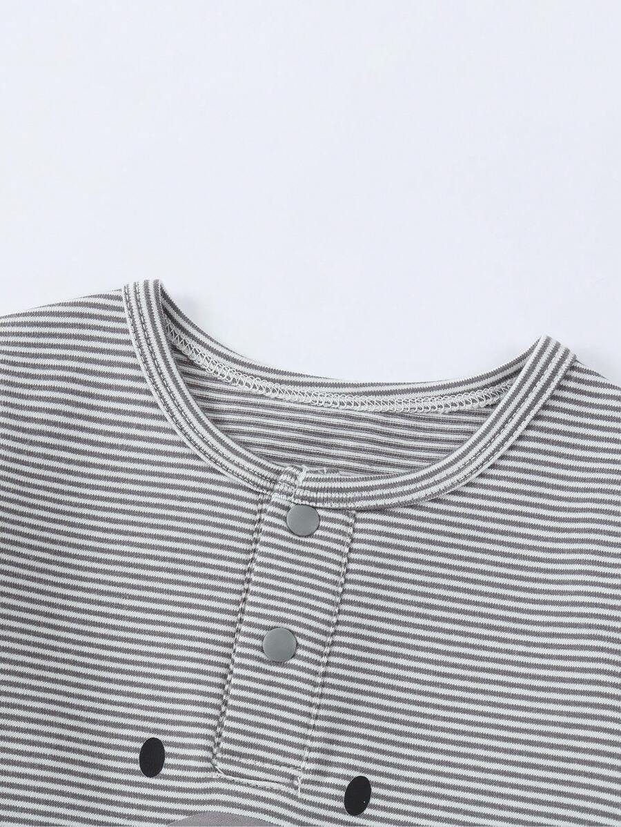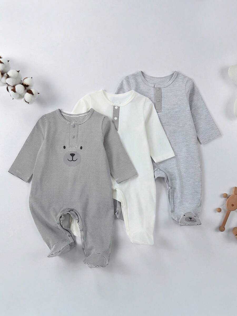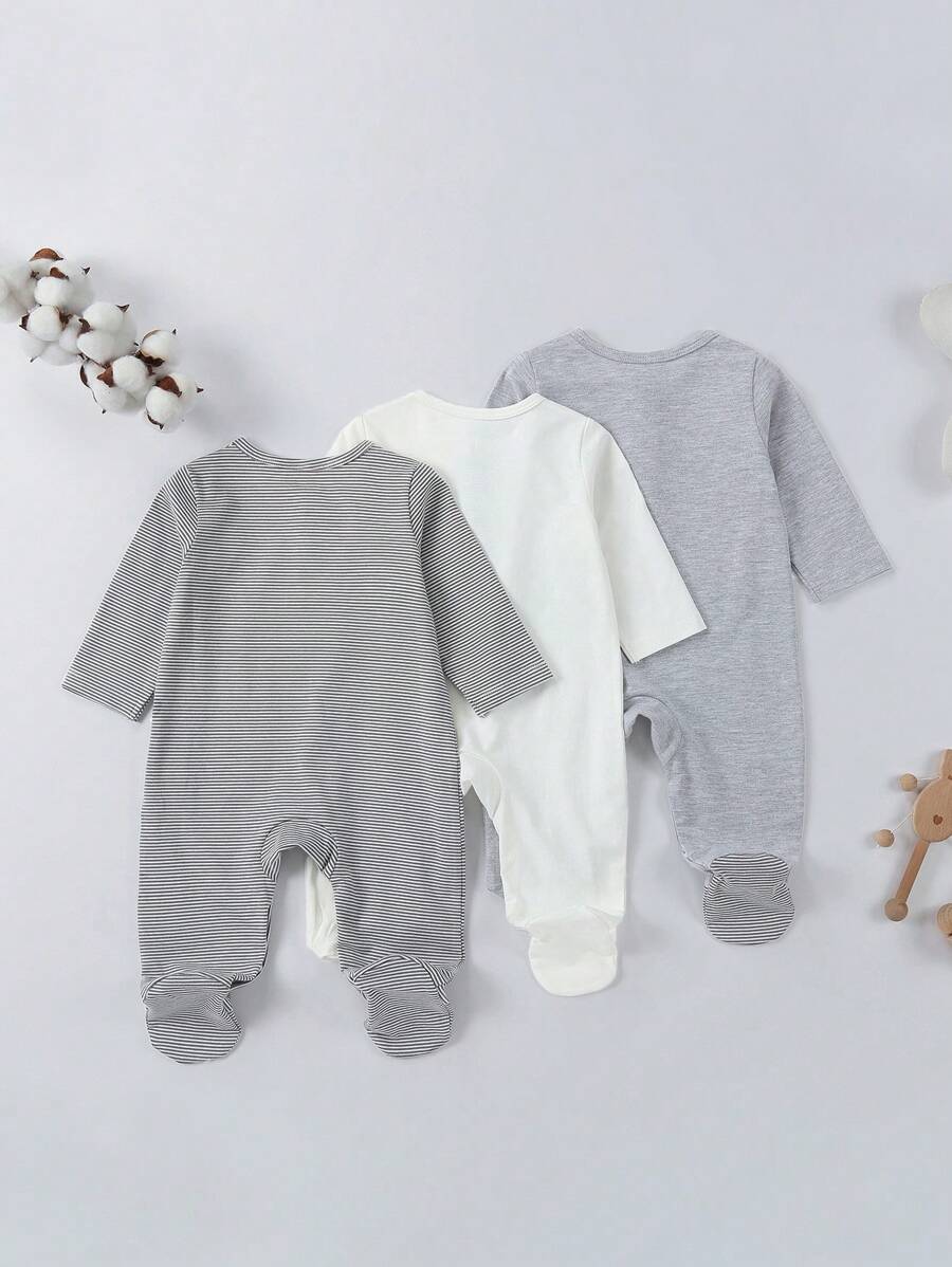 Baby Boy 3pcs Striped & Cartoon Graphic Footed Sleep Jumpsuit
