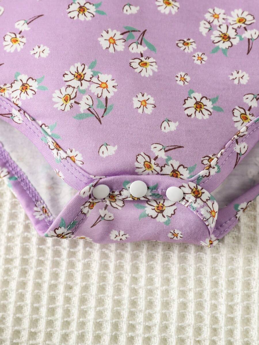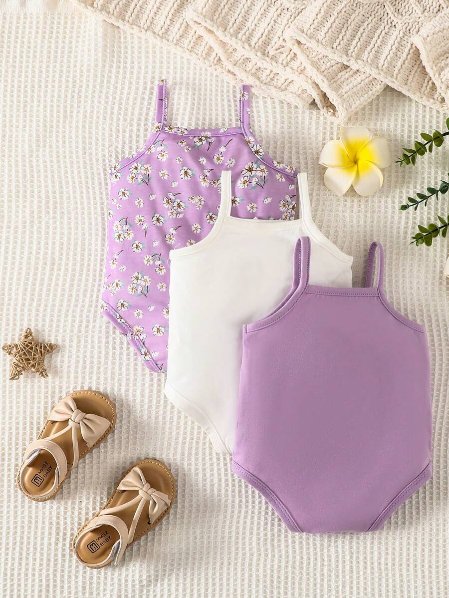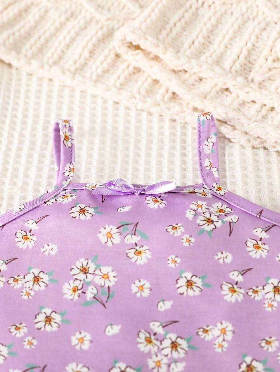 Baby Girl 3pcs Floral Print Bow Front Cami Bodysuit