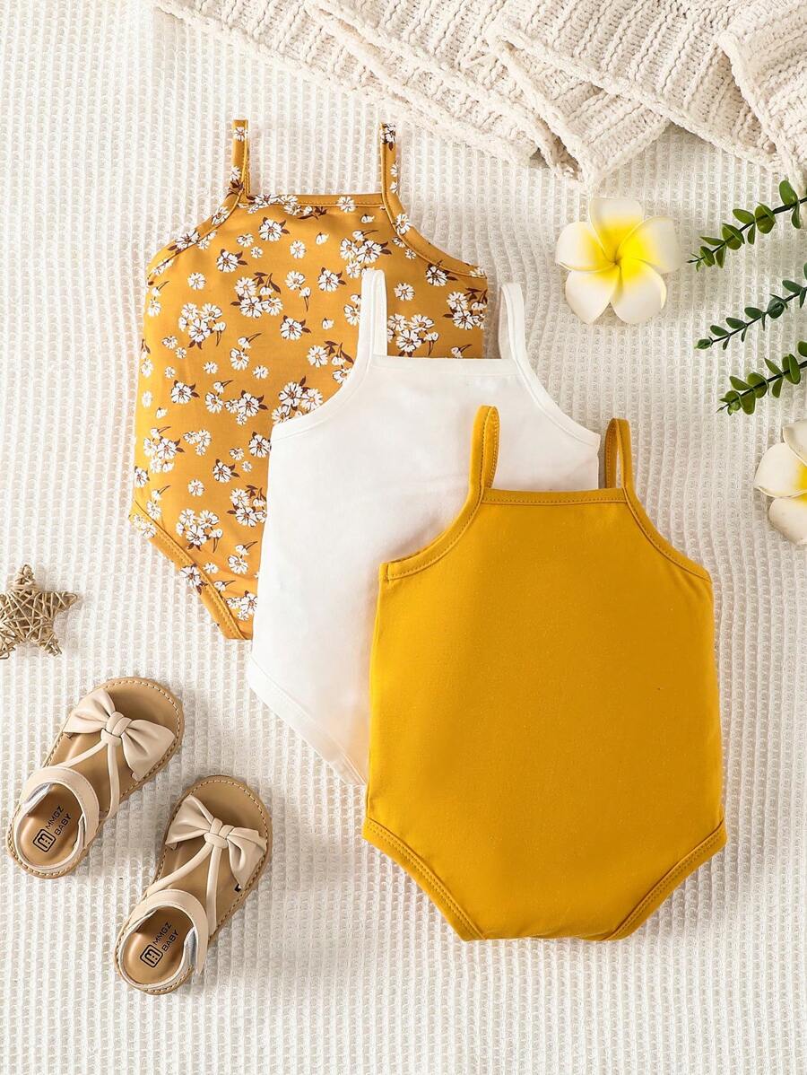 Baby Girl 3pcs Floral Print Cami Bodysuit