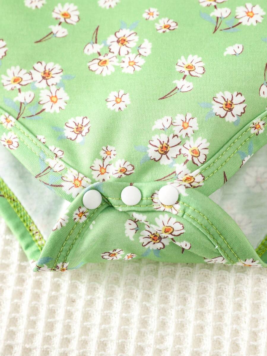 • 3-Piece Set: Includes a floral print cami bodysuit, matching shorts, and an adorable headband for a complete look.