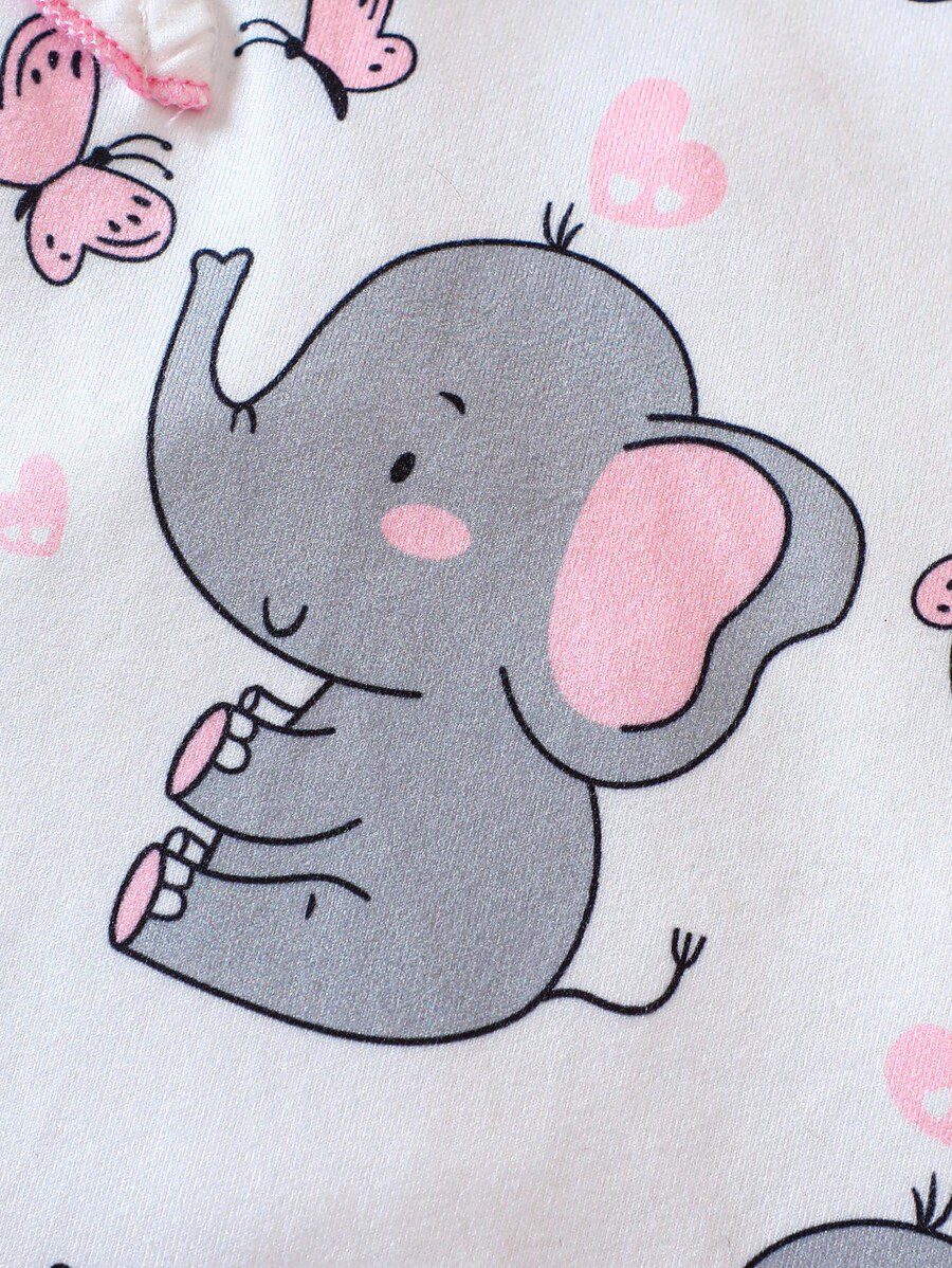 Baby Girl Elephant Print Ruffle Trim Jumpsuit & Headband