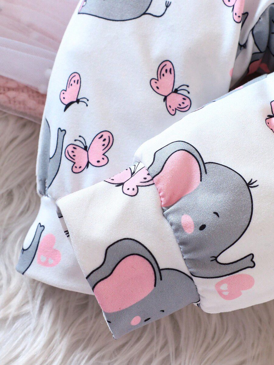 Baby Girl Elephant Print Ruffle Trim Jumpsuit & Headband quantity