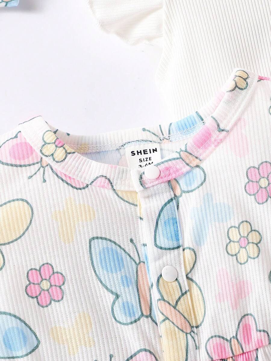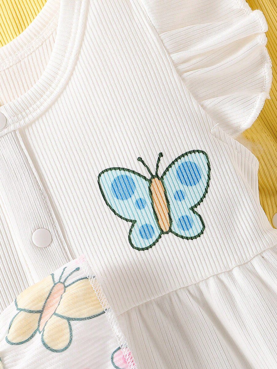 / Baby Girl’s Casual And Simple Style Butterfly Print Romper With Wide And Comfort Elasticity, And Headband