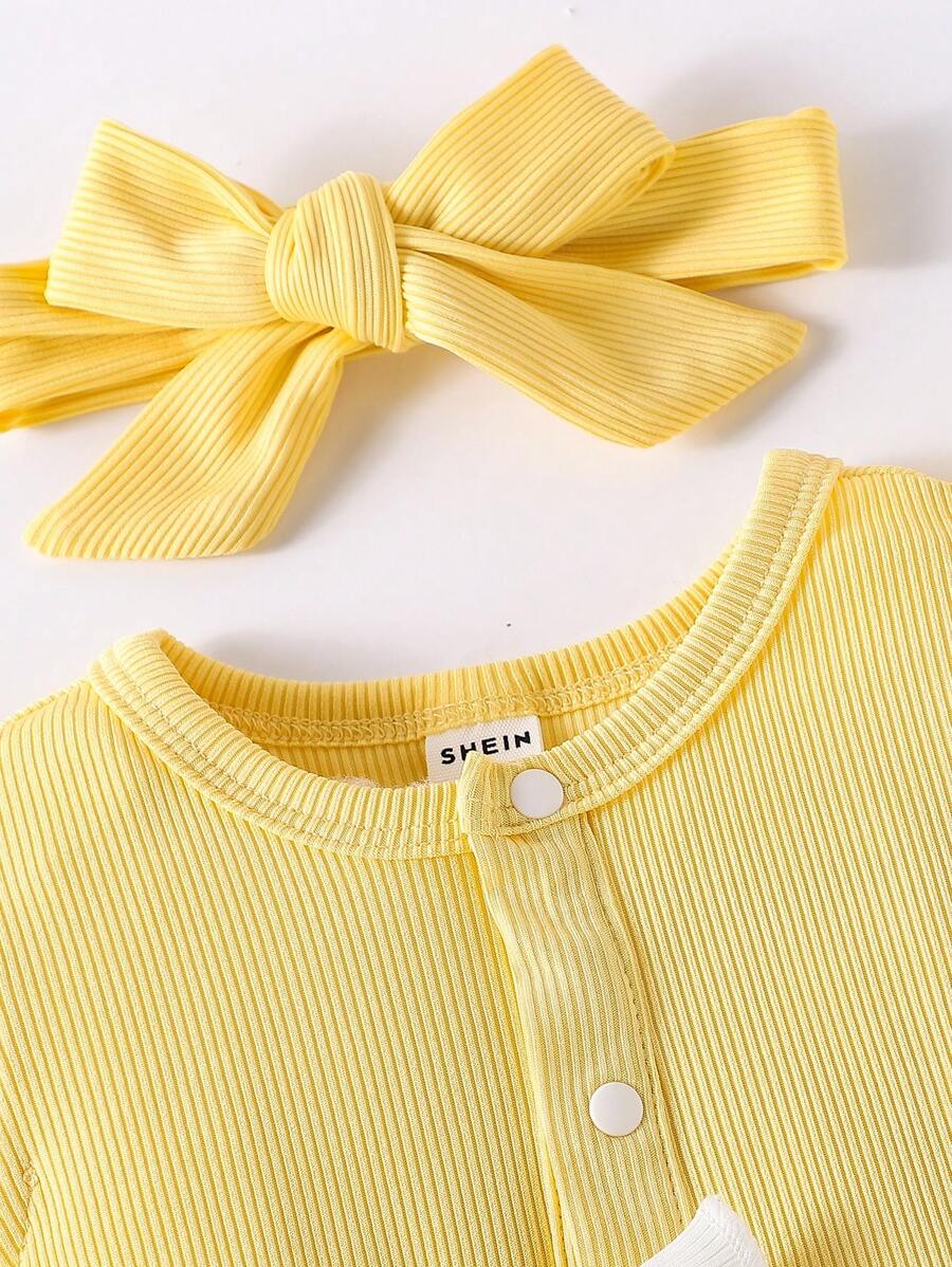 Baby Girl's Casual And Simple Style Butterfly Print Romper With Wide And Comfort Elasticity, And Headband quantity