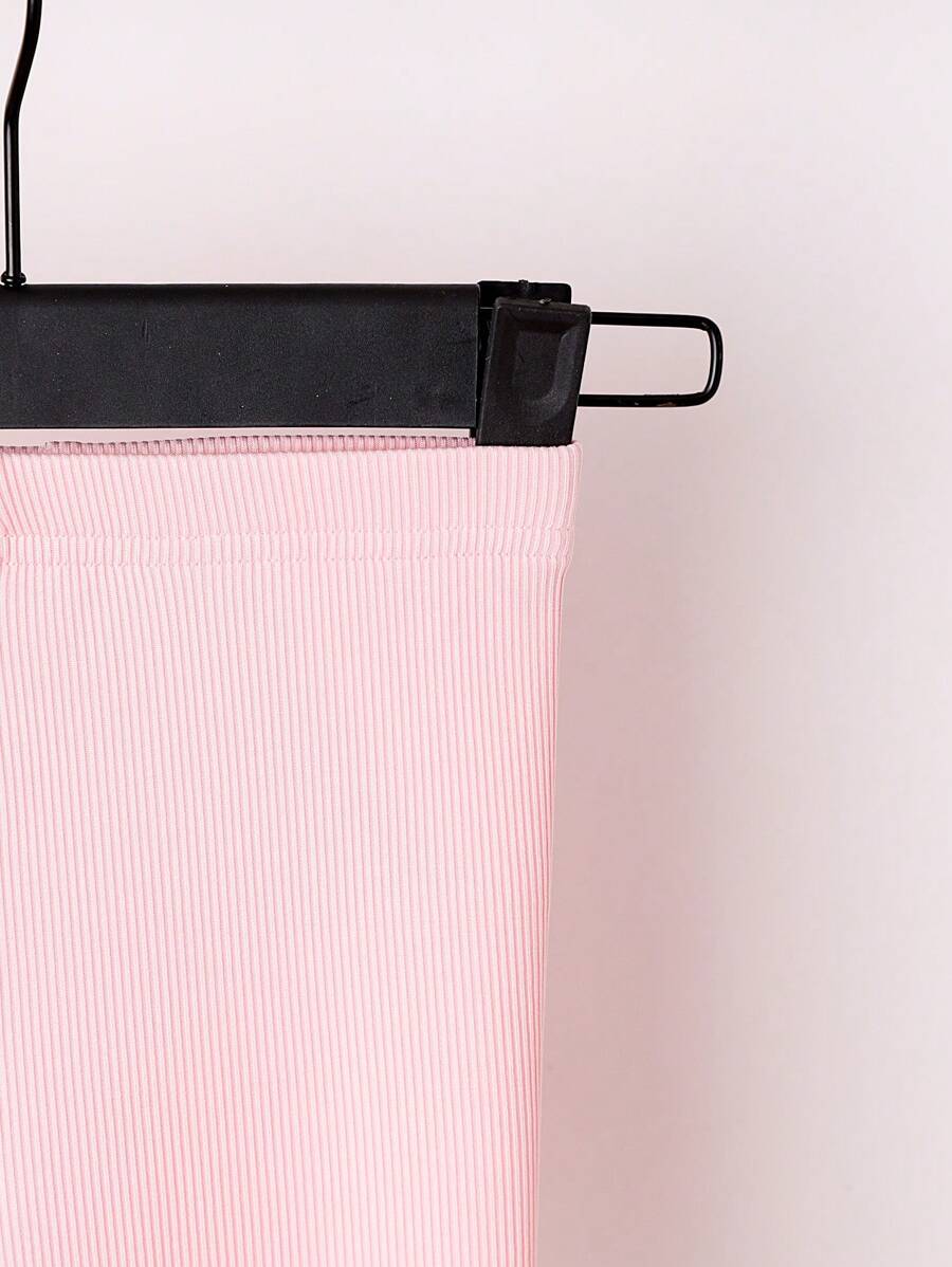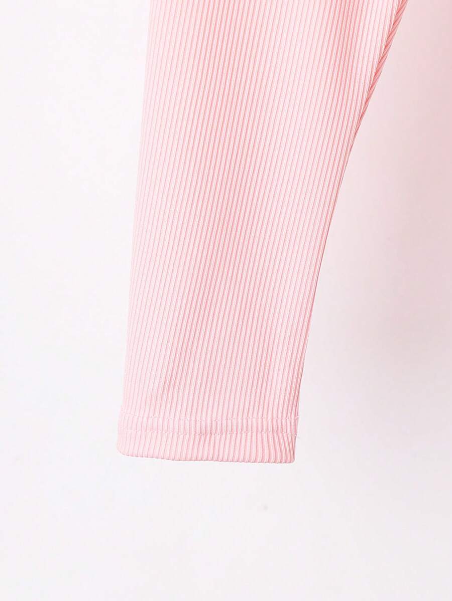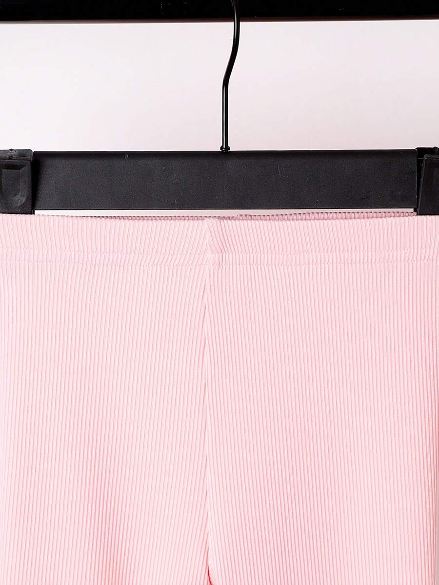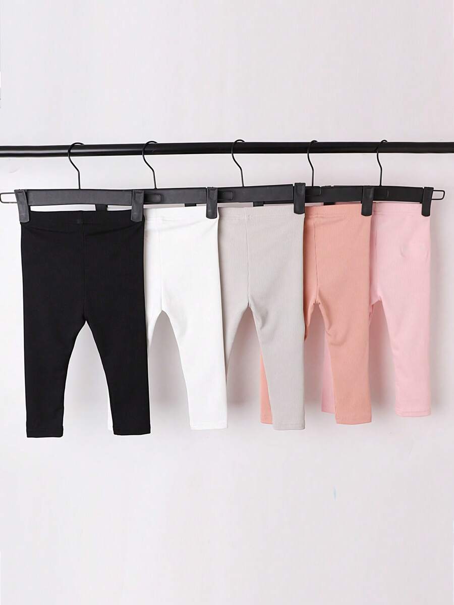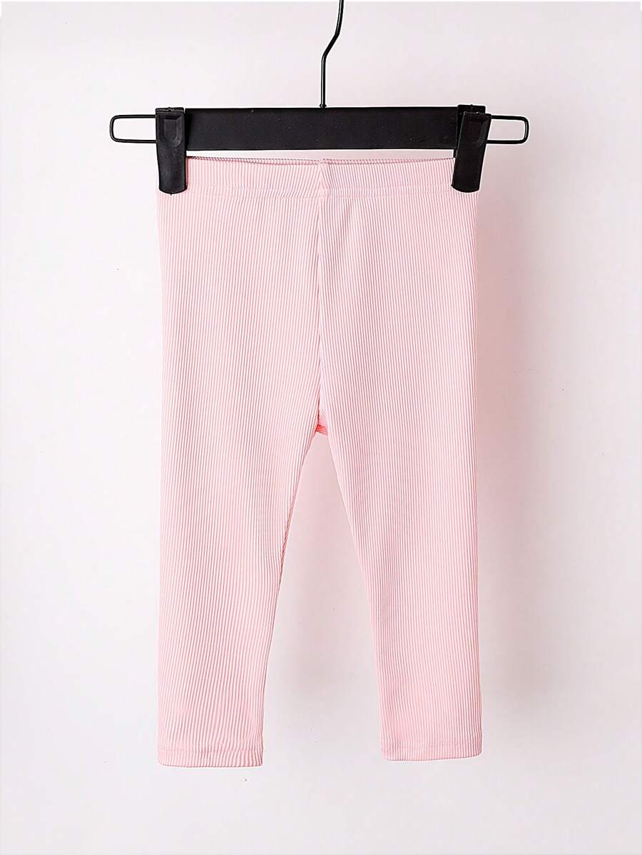 Baby Girls’ Casual Simple Stretchy Leggings Set, Spring/Autumn New Style, Ribbed Design, High Waist, Versatile Bottoms