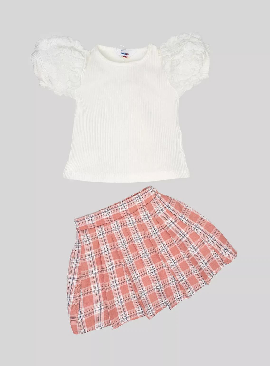 Co-ord Set: Includes a short-sleeved top and matching skirt for a complete outfit.