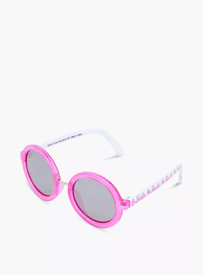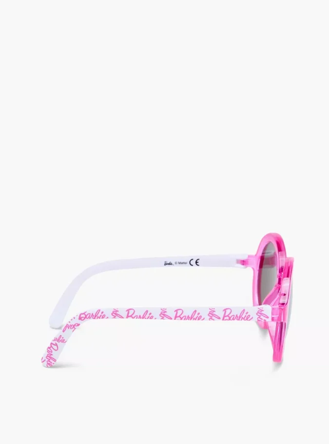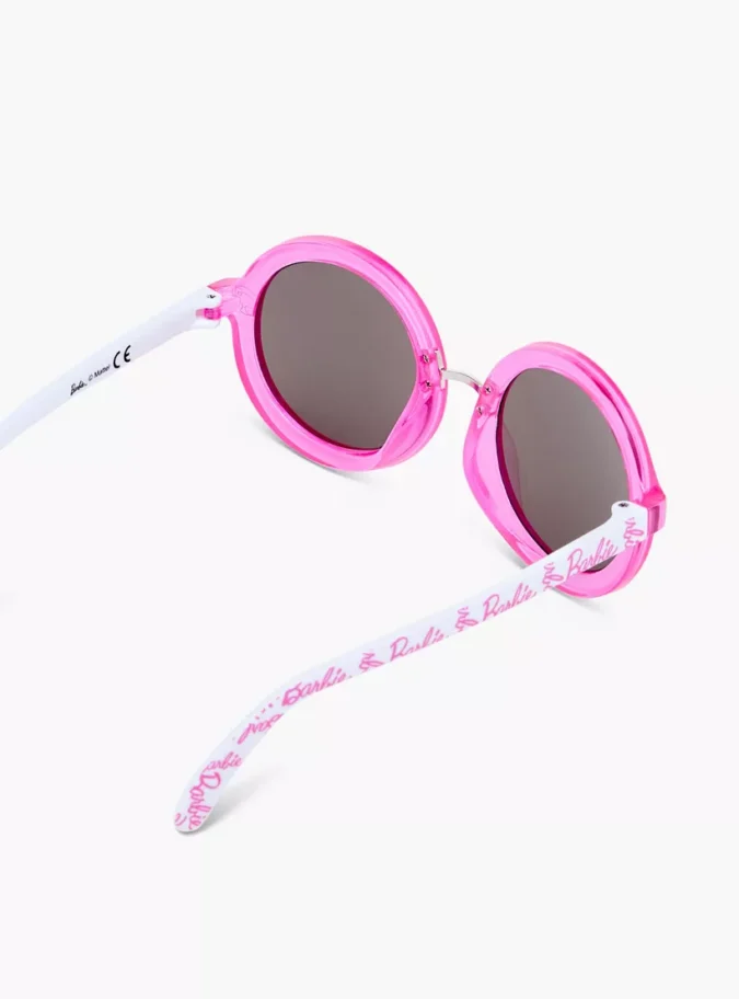 The most prominent feature is the all-over Barbie logo print on the frames. This instantly identifies the sunglasses as a Barbie product and appeals to fans of the brand.