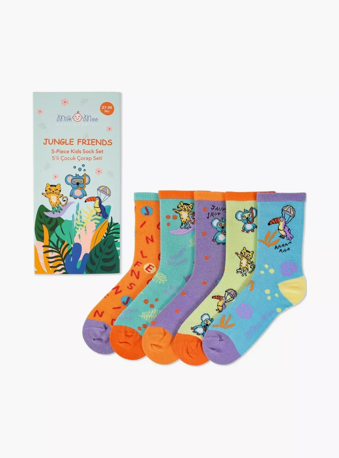 Biggdesign 5 Pair of Printed Socks – Jungle Friends – Multicolour
